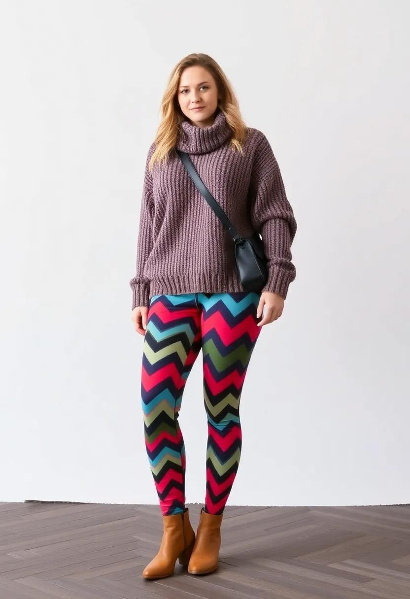 Embrace a dash of retro flair with vibrant chevron patterns on soft leggings that not only capture attention but also provide extraordinary comfort. The dynamic zigzag design creates a playful visual interest, making these leggings perfect for elevating any casual outing. When paired with a cozy oversized sweater,you’ll achieve a fine balance between stylish and snug. Opt for a chunky knit in a solid color that complements the vivid hues of your leggings. This combination allows your print to shine while ensuring you stay warm and chic, whether at brunch with friends or enjoying a cozy night in.