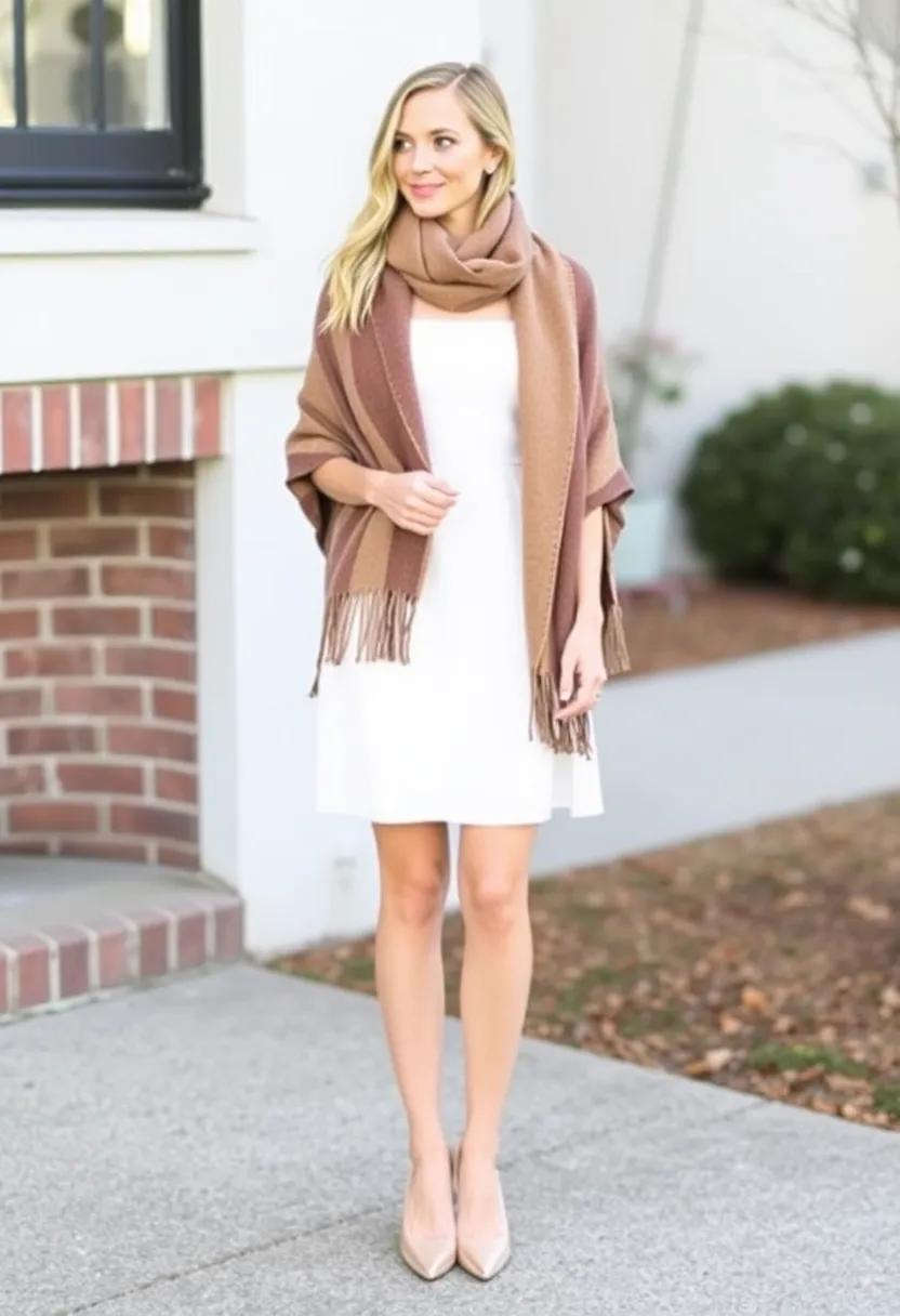 Embrace the art of effortless style with a cozy oversized wool shawl draped over a casual t-shirt dress.This combination not only provides warmth but also adds a layer of sophistication to a relaxed outfit. Look for shawls in rich, earthy tones or subtle patterns that complement your dress. The best part? You can easily transition from day to night by switching from casual outings to dinner plans. Pair this ensemble with fashionable platform sneakers, which provide just the right lift for comfort without sacrificing style. Choose sneakers in vibrant colors or with eye-catching details to really make your outfit pop.