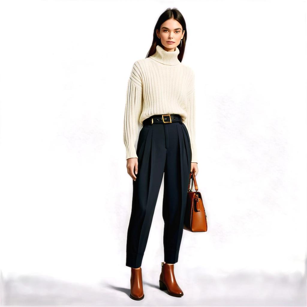 Match cozy knits with pleated high-waisted pants for a chic silhouette