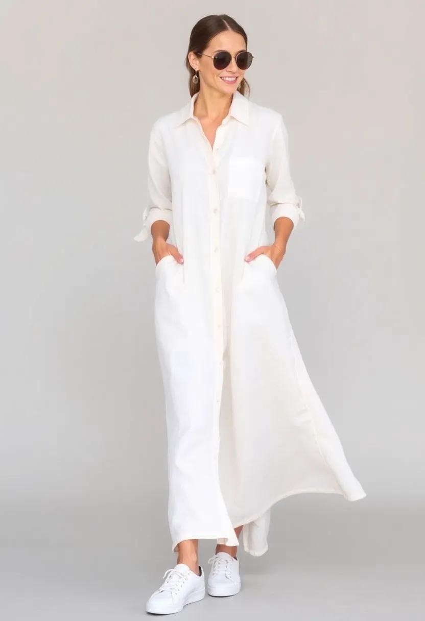 Step ‌out in a breezy ensemble that perfectly balances function and flair. Crafted ‌from breathable linen, this maxi dress offers a relaxed yet refined silhouette that flows effortlessly with each step. The button-front design adds a classic touch, giving you the flexibility to play​ with neckline styles-from a modest ‍collar to ​a laid-back open​ chest-ideal for transitioning from morning⁣ coffee runs to ‍midday errands. The fabric’s natural texture ensures comfort on warm days, ‍while its structure keeps the⁣ look polished without any extra effort.