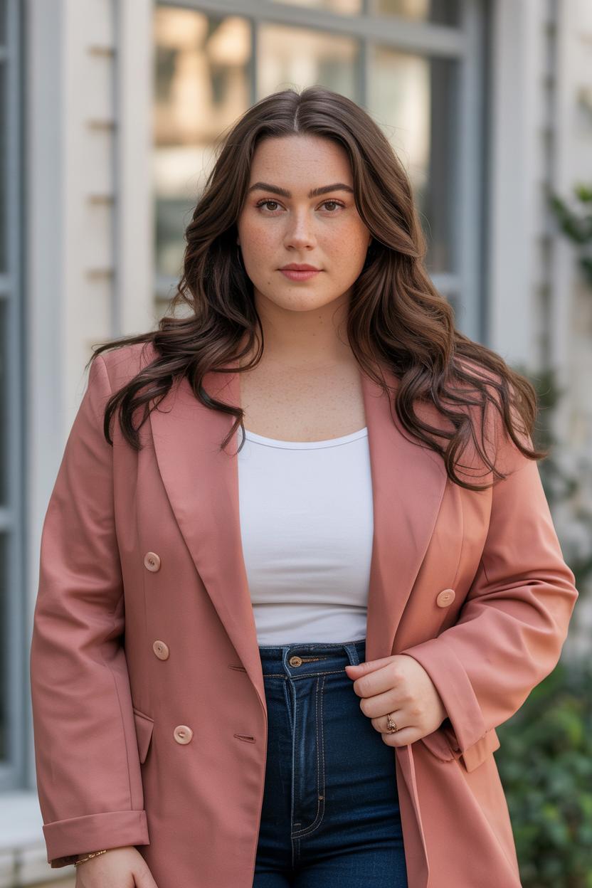 To keep your look balanced, pair your tailored jacket with streamlined pieces underneath.Think fitted tops or simple blouses that won’t compete with the jacket’s form. Consider details like: