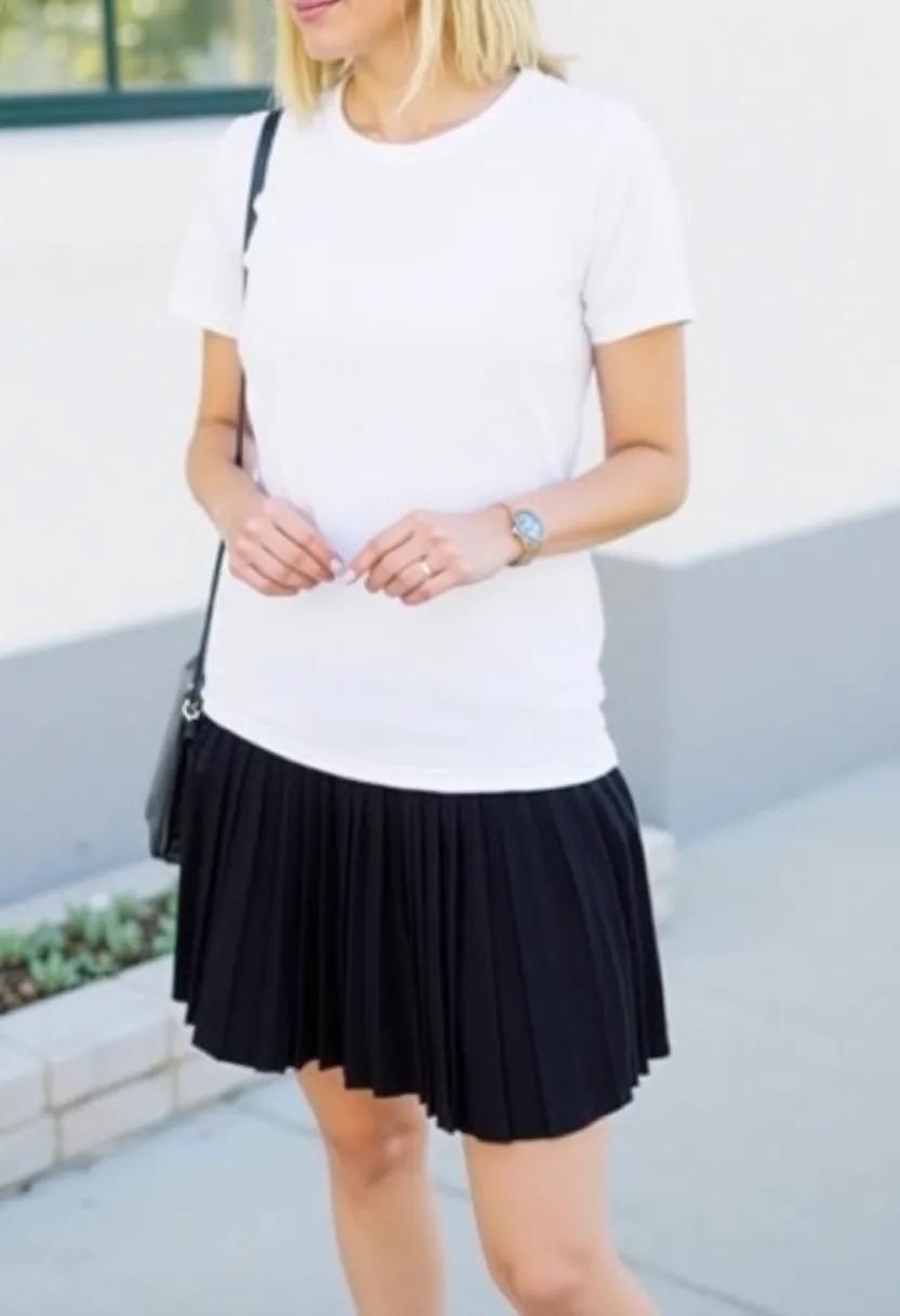 Finish the ensemble with crisp white sneakers to add a fresh and comfortable touch, perfect for all-day wear or casual outings. For a subtle yet stylish detail, roll the skirt’s pleats gently or opt for ankle-length socks to peek out from your sneakers. Here’s a quick styling checklist to nail the look: