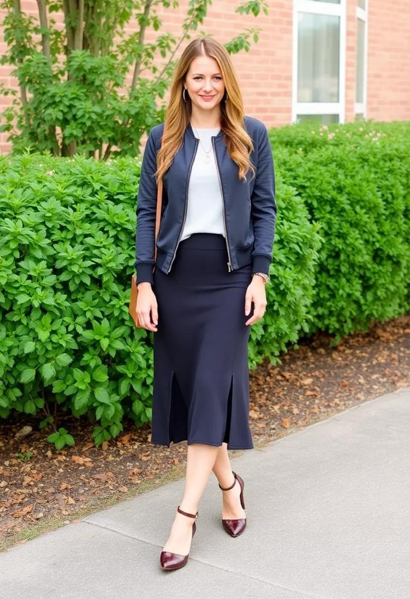 Match your bomber with a denim midi skirt for a laid-back yet stylish outfit
