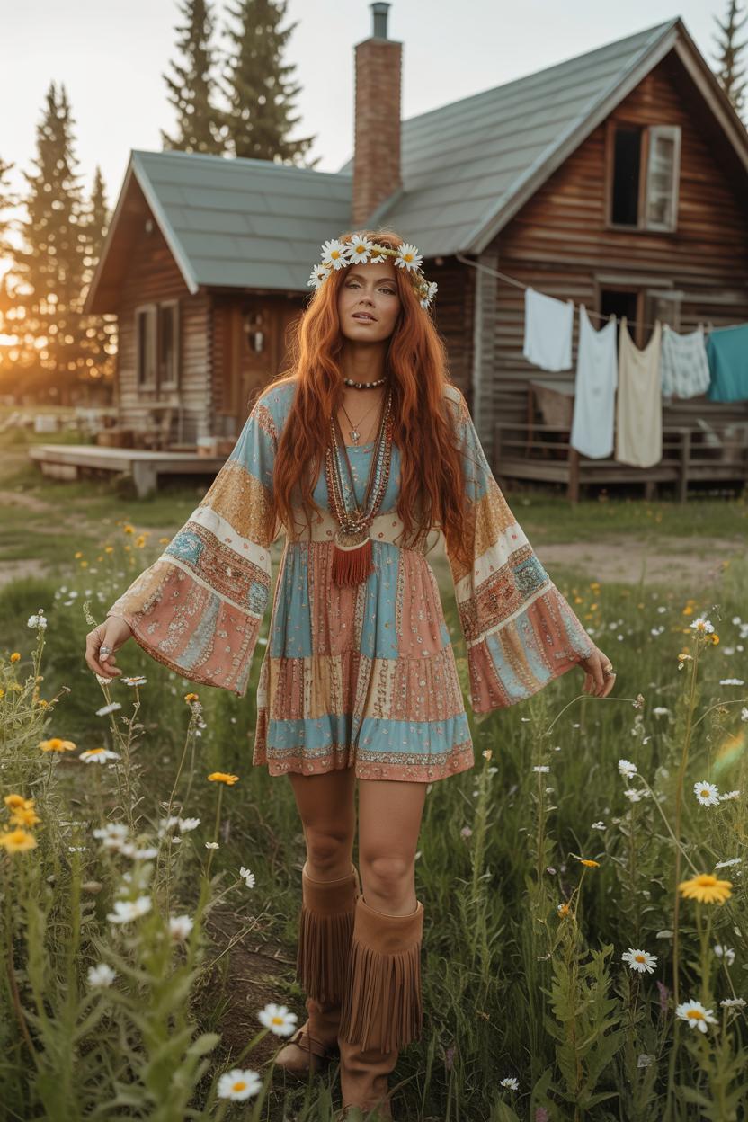 - Add a fringed vest or wide-brimmed hat to deepen the vintage hippie aesthetic.