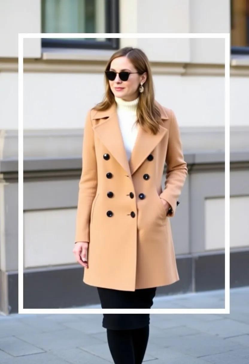 Embrace Classic Elegance: Pair your double-breasted peacoat with a fitted turtleneck and a sleek pencil skirt for a timeless office-ready look