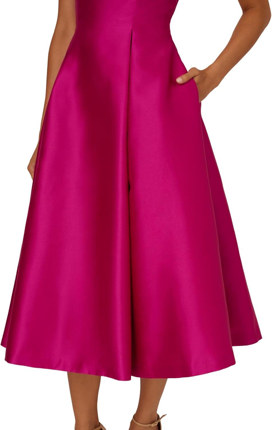 The first thing you notice when you slip into the Adrianna Papell ⁣sleeveless Mikado Fit and Flare ⁣Midi Dress wiht V-Back — the mikado midi, for short — is the fabricS quiet, ⁤ polished sheen and its slightly​ structured⁤ give. The bodice feels composed against⁣ your torso, seams tracing ‌your shoulders and collarbone, ⁤while ⁤the ⁣pleated skirt holds a pleasant, sculpted fullness that doesn’t⁤ collapse around your legs. As you ‍walk,​ the pleats open and close with ⁤a‌ measured snap and the visual weight sits reassuringly at the hem, keeping the silhouette steady. Sitting down, ⁢the skirt keeps its shape rather‌ than bunching, and small details like the pocket ⁤openings reveal themselves only‍ in movement.