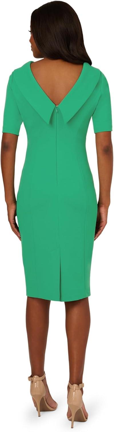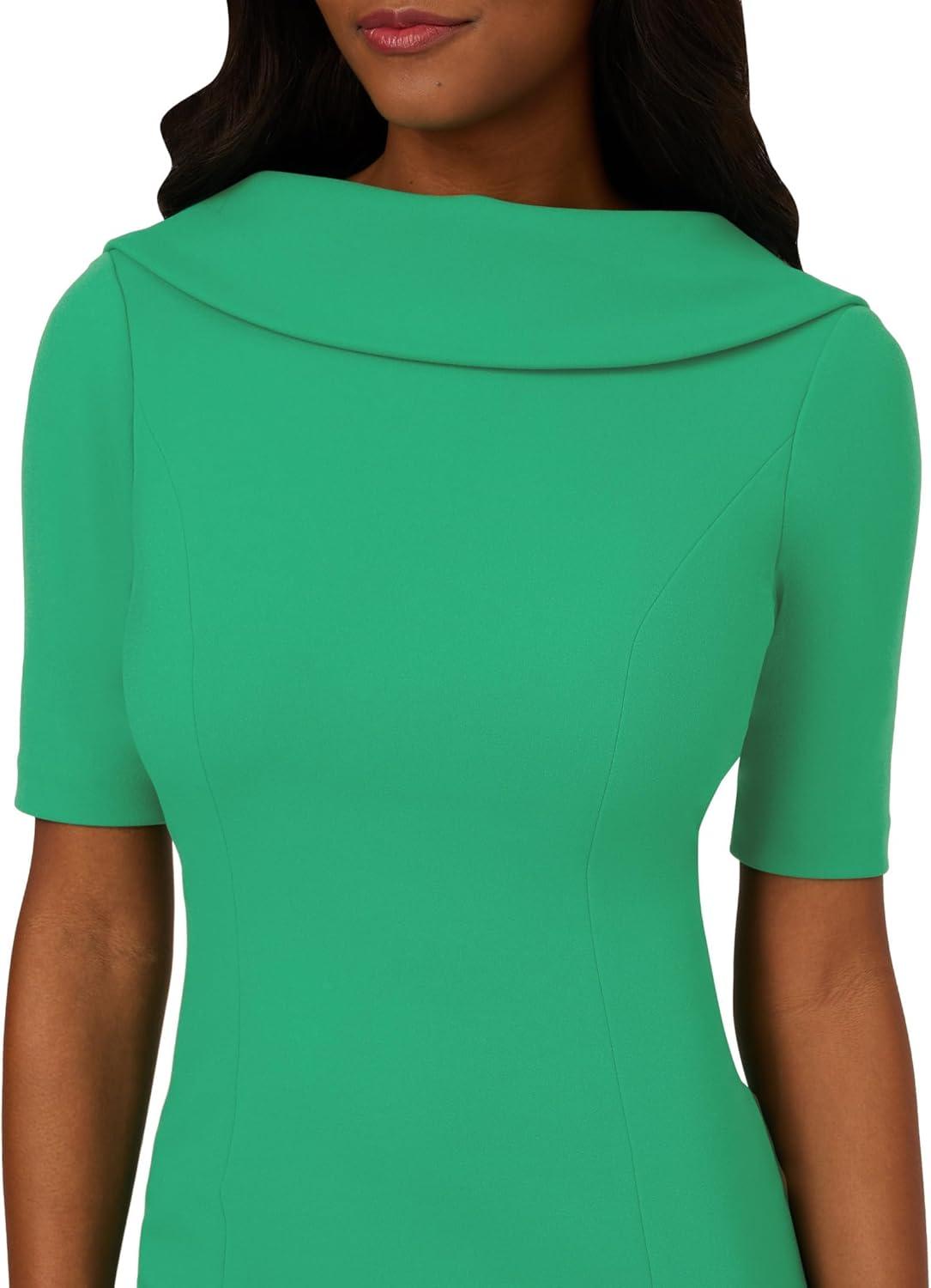 Light from a cloudy morning highlights the crepe’s matte surface and you feel the fabric settle against your skin before you really move. Adrianna Papell’s Roll Neck Sheath with V Back sits with a quiet, reassuring weight — structured enough to hold the rolled neckline, soft enough to skim your curves. As you walk the skirt swings with a discreet sway; when you sit the material drapes over your lap without tugging at the seams. The rolled collar tucks in close without pinching, and the V at the back shifts subtly as you reach or turn. It feels lived-in from the first wear,the kind of piece that notices how you stand and follows when you move.