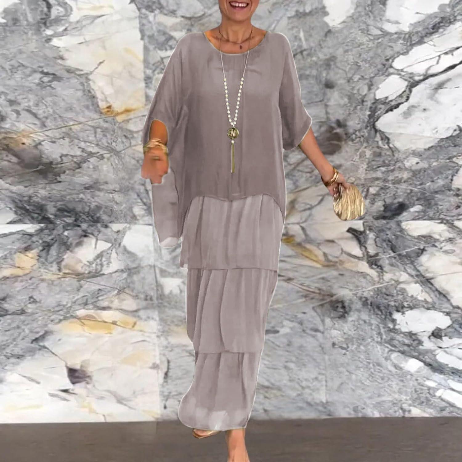 Having worn the chiffon,tiered A-line dress through a rain-soaked commute,a slow afternoon of errands,and a small evening gathering,you quickly get a feel for its real-world rhythm. The loose cut and 3/4 batwing sleeves keep movement easy and forgiving, while the layered skirt adds enough shape to keep it from looking shapeless. Offered in solid colors and in plus-size cuts,it can slide between daily wear,office hours,casual outings,and low-key special occasions depending on how you accessorize.In the short review ahead, you’ll find practical notes on fit, fabric, and the small things that matter when you actually wear it.