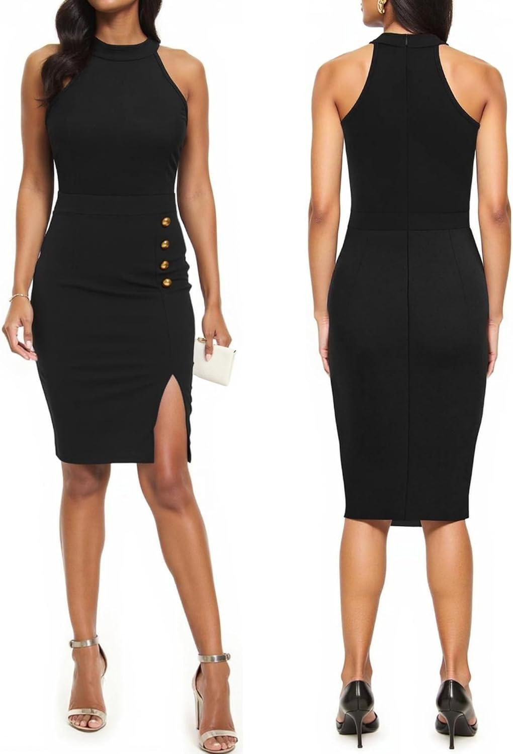 Elegant versatility: Perfectly suited for formal workdays, cocktail parties, and weddings. Figure-flattering design: The wrapped waist and front slit enhance curves gracefully. Comfortable fit: Sleeveless style and breathable fabric keep us at ease during warm days. Easy to style: Neutral tones and classic pencil silhouette make accessorizing a breeze. Good customer ratings: Average ratings hover around 4.2 stars, reflecting general satisfaction. |