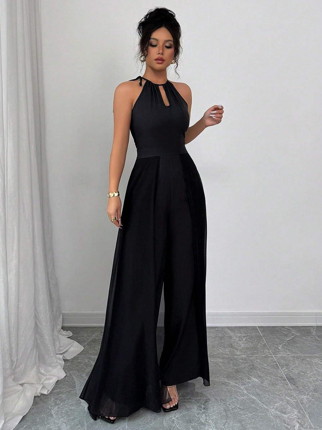 We recently had the chance to try on the Sleeveless Jumpsuit Pants Romper for Women - an elegant piece that promises a blend of sophistication and comfort. Crafted from a sheer chiffon fabric with a halter tie-up V-neck and a waist-cinching silhouette, this romper caught our eye for its stylish design and thoughtful details like the backless cutout and sleek zipper closure. Available in classic black and featuring a regular fit, it’s designed to flatter a variety of body shapes, with sizing that ranges from small to XL. Throughout our experience, we paid close attention to the fit, fabric quality, and overall wearability to give you an honest insight into weather this jumpsuit lives up to its chic appeal. Join us as we break down how it performs in real life and who might find it the perfect addition to their wardrobe.