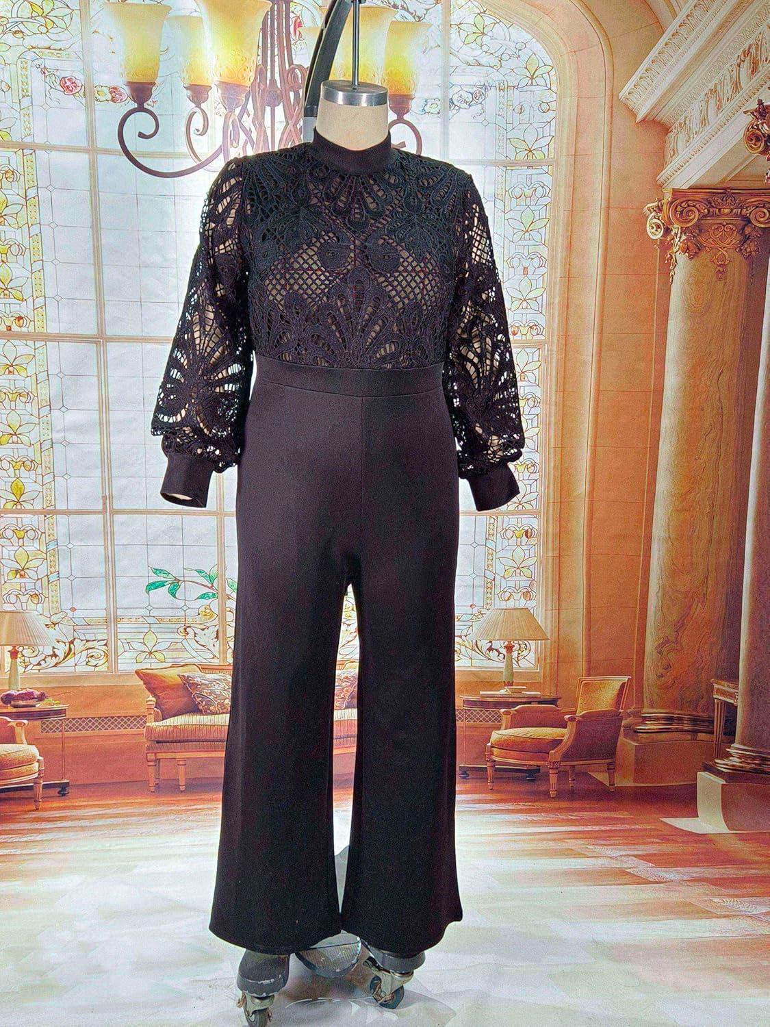 On arrival at an evening event, the piece often reads as intended: the lace hollows ⁤pick‍ up overhead light, the long sleeves and ⁣the defined waist create ‌a composed, vertical ⁢line, and the wide⁣ legs develop a soft sway when walking down a corridor or across a⁣ reception room. While standing or moving at a measured pace, the outfit keeps a tidy silhouette; the lace panels ⁤and cut attract attention without ⁤much ⁢need ‍for frantic adjustments, and the interplay of opaque and open‍ areas‌ becomes a quiet focal point under softer lighting.