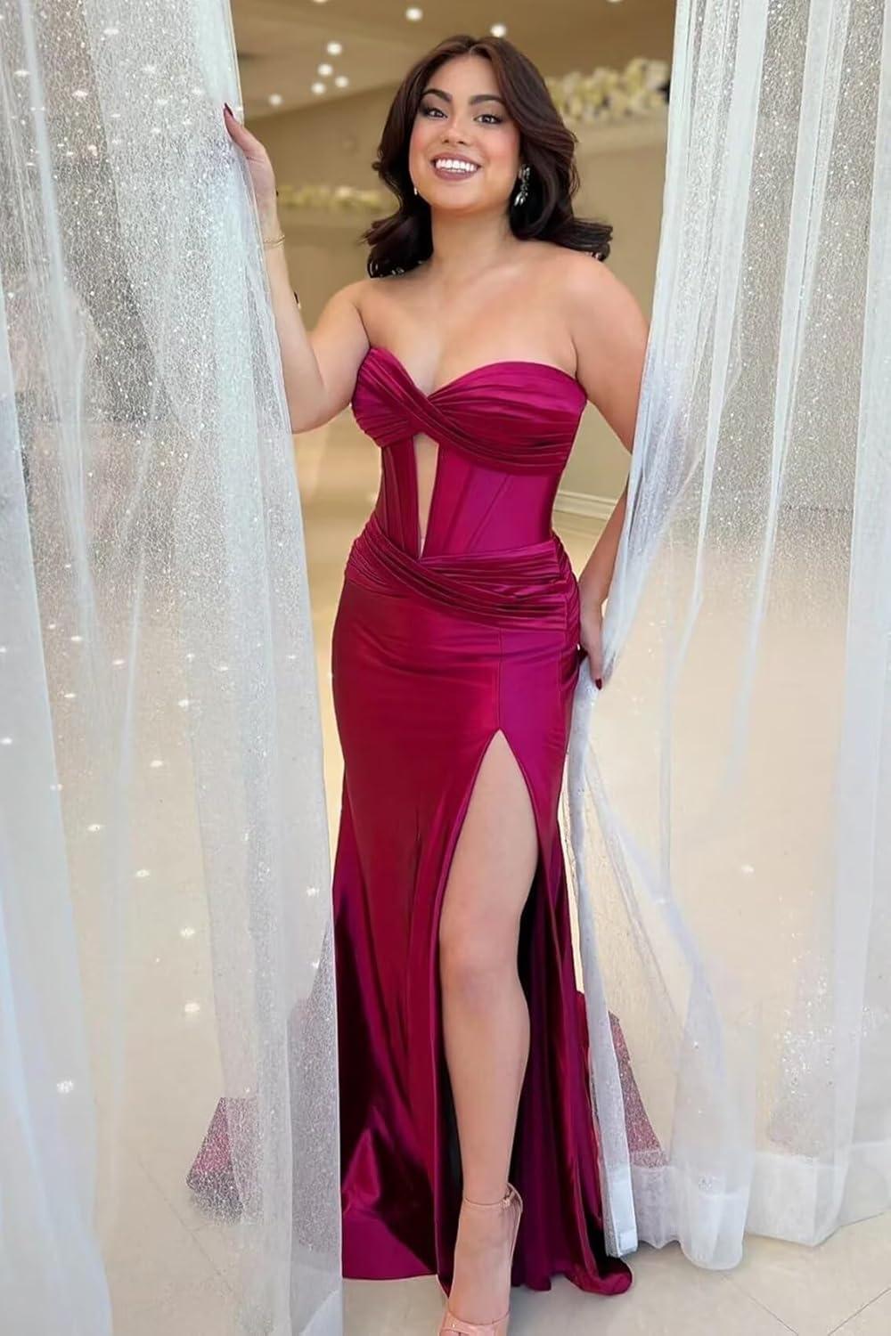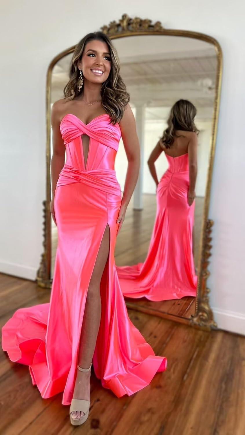 this gown strikes a perfect balance between elegance and modern allure.The satin fabric with its subtle pleats creates a graceful flow, while the sweetheart neckline and backless design add a touch of bold sophistication.⁤ Its ⁤mermaid silhouette, ‌complemented by a tasteful slit, makes it an ideal⁤ choice for anyone looking to make a statement at a formal event⁣ without ⁢compromising on ⁣comfort or style. Given its long, flowing design‌ and classic yet contemporary details, this dress fits seamlessly into proms, gala dinners, or any sophisticated evening​ affair.