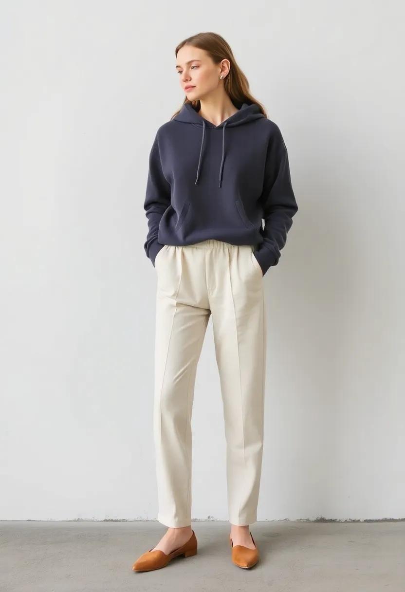 Effortless Chic: Elevate Your Style with a Hoodie, High-Waisted Trousers, and Flats