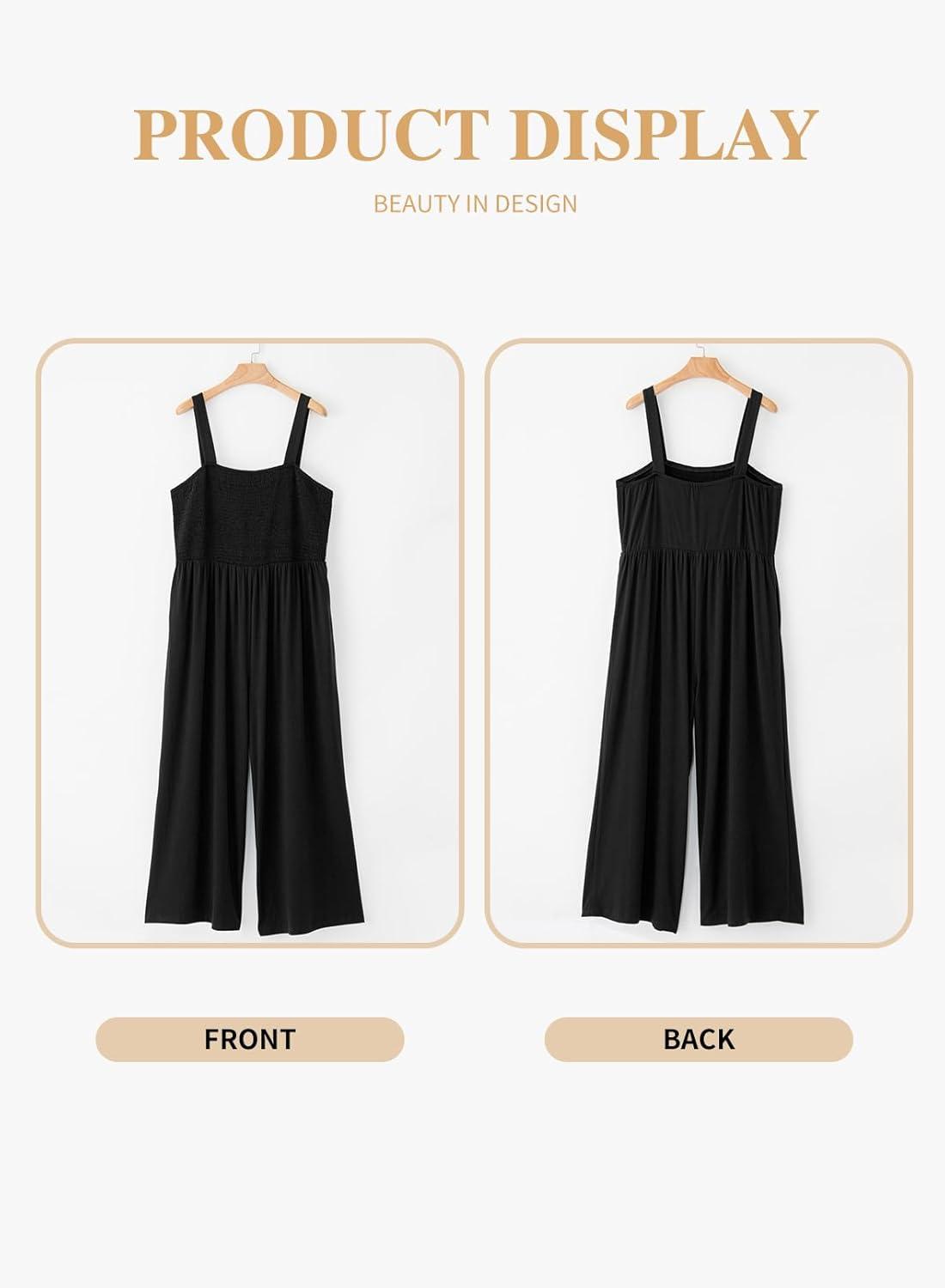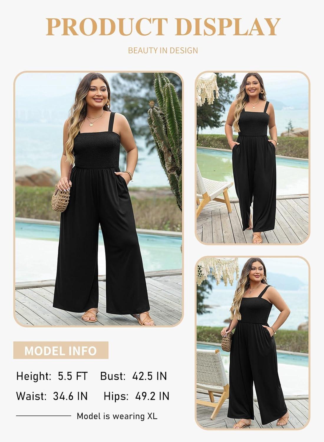 After thoroughly testing this jumpsuit,we can confidently say it stands out as a versatile and comfortable addition to any plus size wardrobe.Its smocked waist provides a flattering shape without feeling restrictive, while the wide leg design offers both style and ease of movement.The lightweight,stretchy fabric feels soft against the skin and is perfect for warmer seasons like spring and summer. We also appreciated the practical pockets, which add convenience without compromising the sleek look. Plus, caring for this piece is a breeze since it’s fully machine washable.