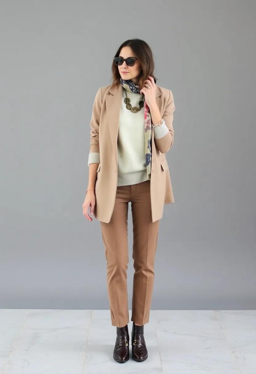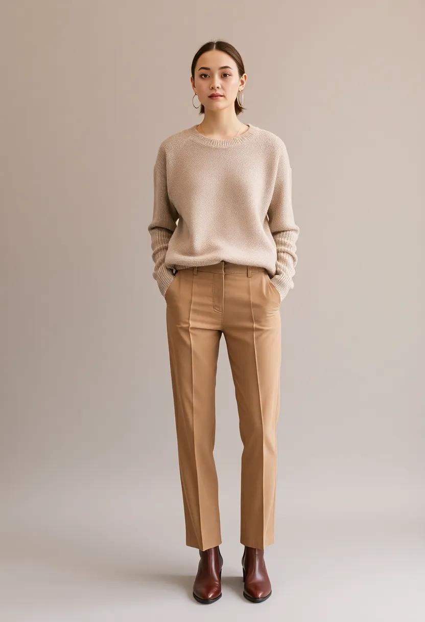 Embracing the cozy allure of a neutral sweater paired with straight-leg pants is key to effortlessly exuding elegance. Start by selecting fabrics that feel luxurious against the skin; think cashmere, merino wool, or a high-quality cotton blend. When it comes to your color palette, opt for muted tones such as soft beige, taupe, or gentle grays that not only flatter various skin tones but also serve as a sophisticated backdrop for your outfit. The fit is crucial—aim for a relaxed yet tailored silhouette to balance comfort with refinement.Pair your sweater slightly tucked into the waistband of your pants to enhance your shape while keeping the look casual.