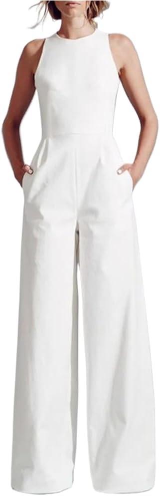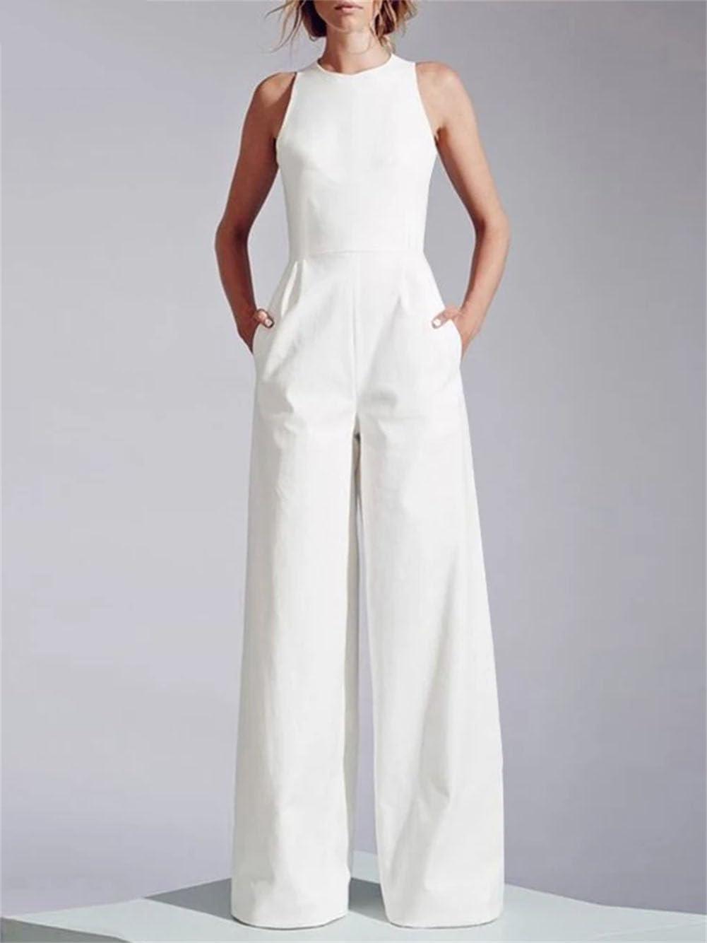 Explore more and grab yours ‍today: Women elegant Long ‌Rompers Summer Sleeveless Jumpsuits – White​ XL