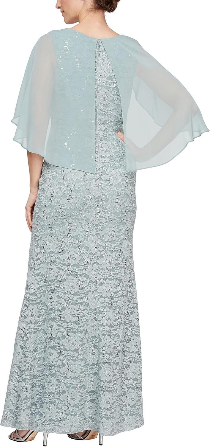 Overview of the S.L. Fashions Petite Long Sequin Lace Dress with Capelet