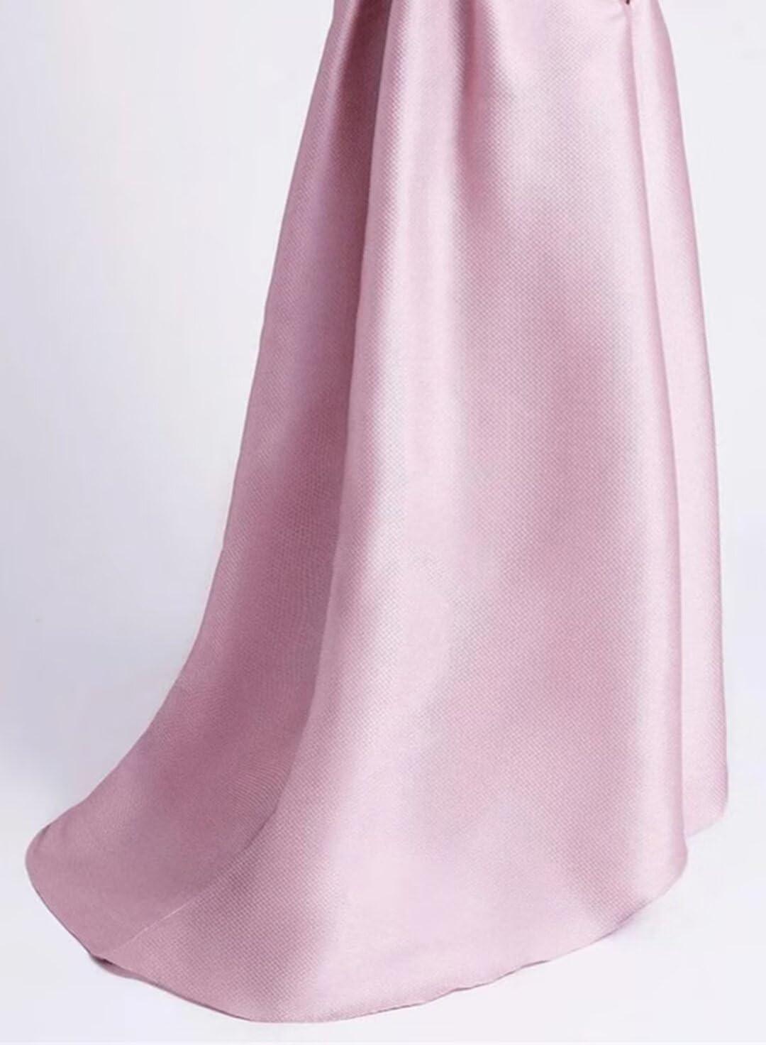 The pockets are perfectly integrated into the high-low A-line design, maintaining the dress’s graceful flow and elegant appearance. Made from luxurious satin, the fabric subtly conceals the pockets so they don’t disrupt the gown’s polished look. Whether we’re at a wedding or an evening party, the pockets offer functionality and fashion in equal measure-making this dress a smart choice for those who want elegance and ease combined.
