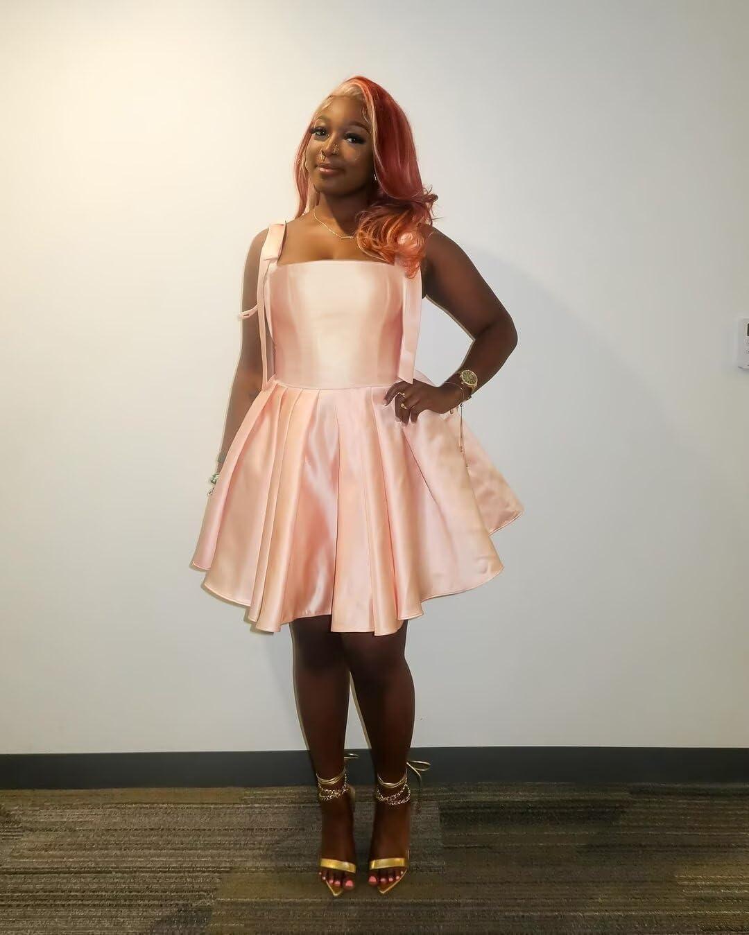 from the moment we tried this satin dress, it was clear how well it fits the vibe of both prom nights and elegant wedding receptions. The soft, skin-friendly satin fabric gives a luxurious feel without compromising comfort-even after hours of dancing and mingling.The A-line silhouette paired with a cinched waist flatters various body types while the square neckline and spaghetti straps balance classic elegance with a touch of modern charm. One standout feature for us was the discreet pockets, which added a practical edge without disrupting the sleek, pleated design. Its slightly short length keeps the look youthful and energetic, perfect for evenings filled with celebration.