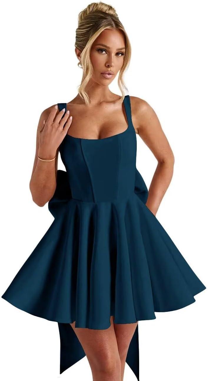 after thoroughly trying this elegant cocktail dress, we found it perfectly suits a variety of special occasions-from homecoming and parties to weddings and formal gatherings. The satin fabric combined with the chic bow-knot detail and square neckline creates a refined yet playful look that feels comfortable and flattering. Its delicate spaghetti straps add a graceful touch while the peacock color offers a unique vibrancy without overpowering your ensemble. We especially appreciate the availability of customized sizing options, which ensure a tailored fit for different body shapes. This consideration adds great value and confidence when purchasing online.