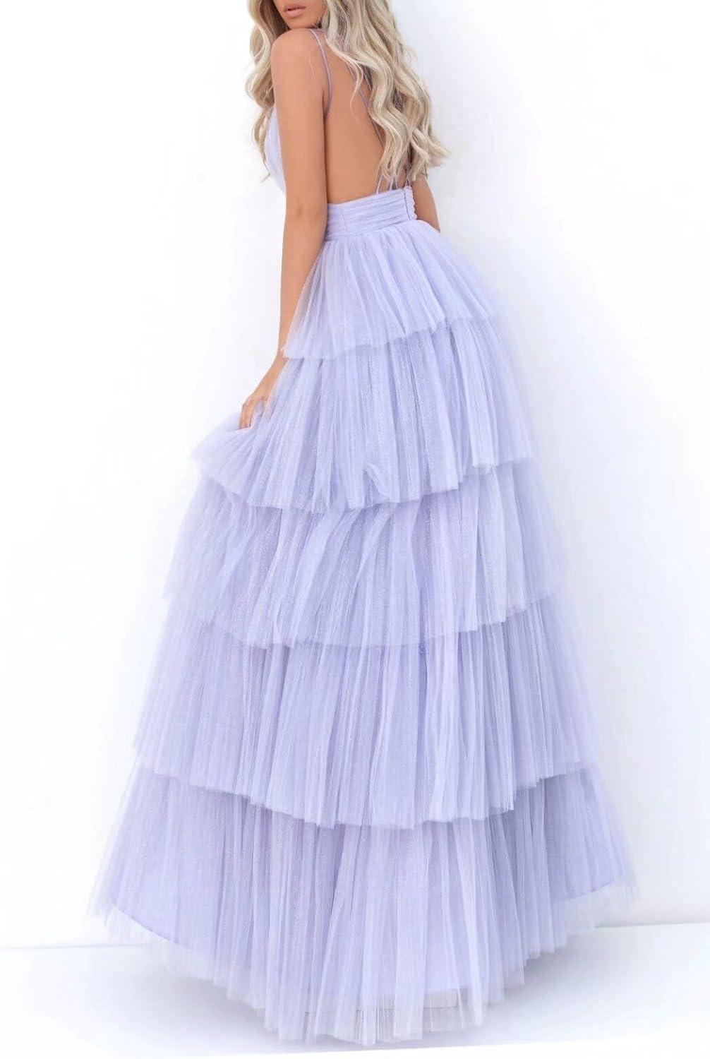 When it comes to dressing for memorable evenings, this gown stands out for its delicate tulle fabric and graceful A-line silhouette that flatters a variety of body types. The V-neck and ruffled details add a touch of romantic elegance, while the long, backless design ensures you make a sophisticated statement. Whether you’re attending a prom, formal party, or elegant ball, this dress strikes the perfect balance between classic charm and modern flair. Its breathable material coupled with an airy feel makes it comfortable to wear throughout the night, allowing us to enjoy the occasion without compromise.