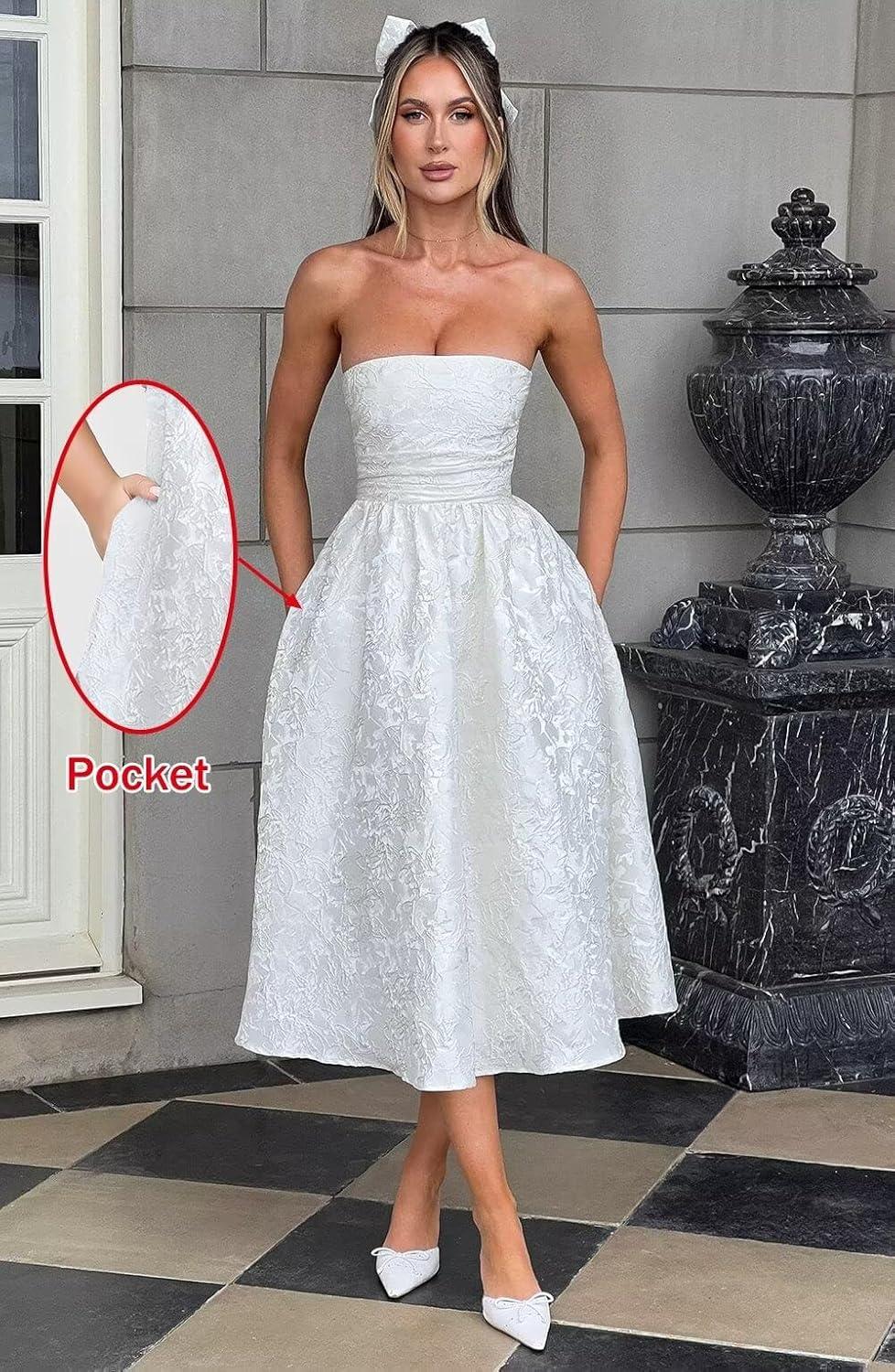 Ready to make a graceful entrance in this stunning dress? Discover more and shop now by clicking here: Elegant White Jacquard Flora Dress with Pockets on Amazon.
