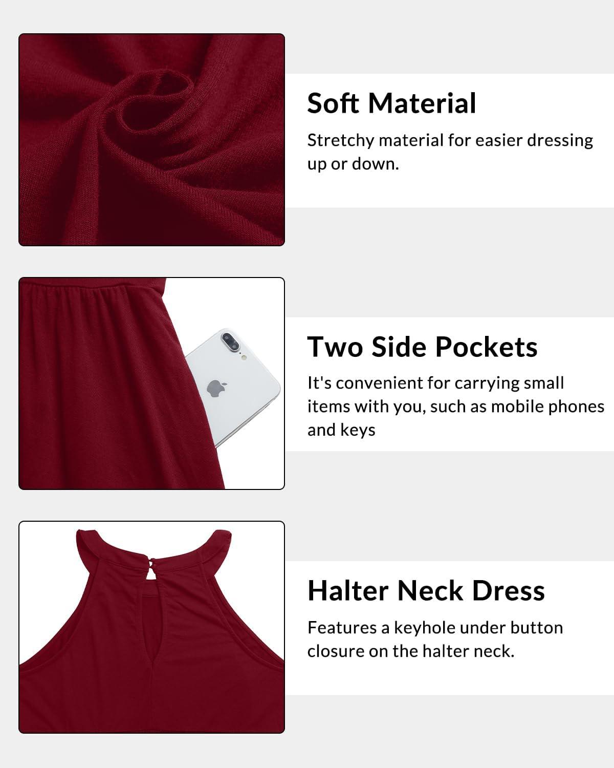 In addition to the flattering silhouette, the halter neck pairs seamlessly with the lightweight fabric to create a breezy, effortless look. The absence of sleeves keeps the focus on the neckline and upper back, giving us a subtle highlight of skin that looks chic and flattering on all body types. The design choices combined with practical elements, like discreet pockets, elevate the dress far beyond basic casual wear.