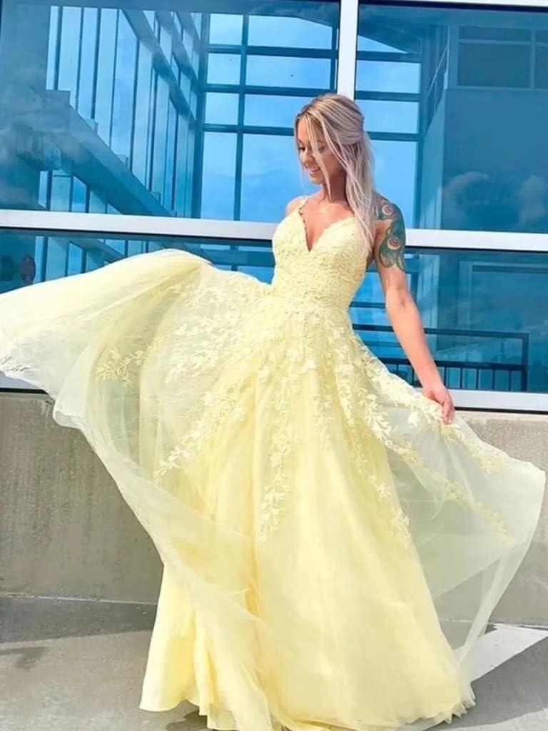 This dress brilliantly combines timeless elegance with delicate detailing, making it an extraordinary choice for formal occasions.The V-neckline and spaghetti straps offer a graceful silhouette, while the tulle lace appliques add a touch of romantic charm, perfect for prom, weddings, or quinceañeras. Its A-line design flatters various body types by accentuating the waist and flowing effortlessly into a ball gown skirt, creating a princess-like effect without compromising comfort.