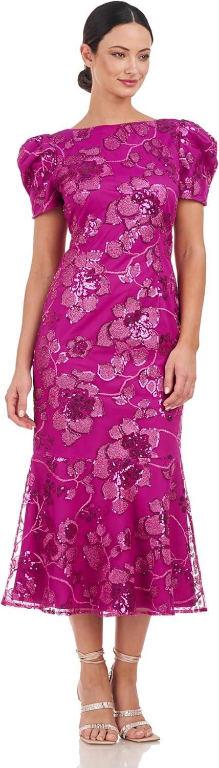 We’ve found this tea-length cocktail dress to be ‌incredibly ‍adaptable, fitting seamlessly into​ a variety of⁣ events. Its metallic floral embroidery ​and shimmer from sequins create a ​striking look perfect​ for evening soirées or upscale gatherings. The bateau neckline paired with pleated puff sleeves adds a sophisticated ​flair, allowing it to transition smoothly from formal dinners to celebratory parties without feeling out of place.