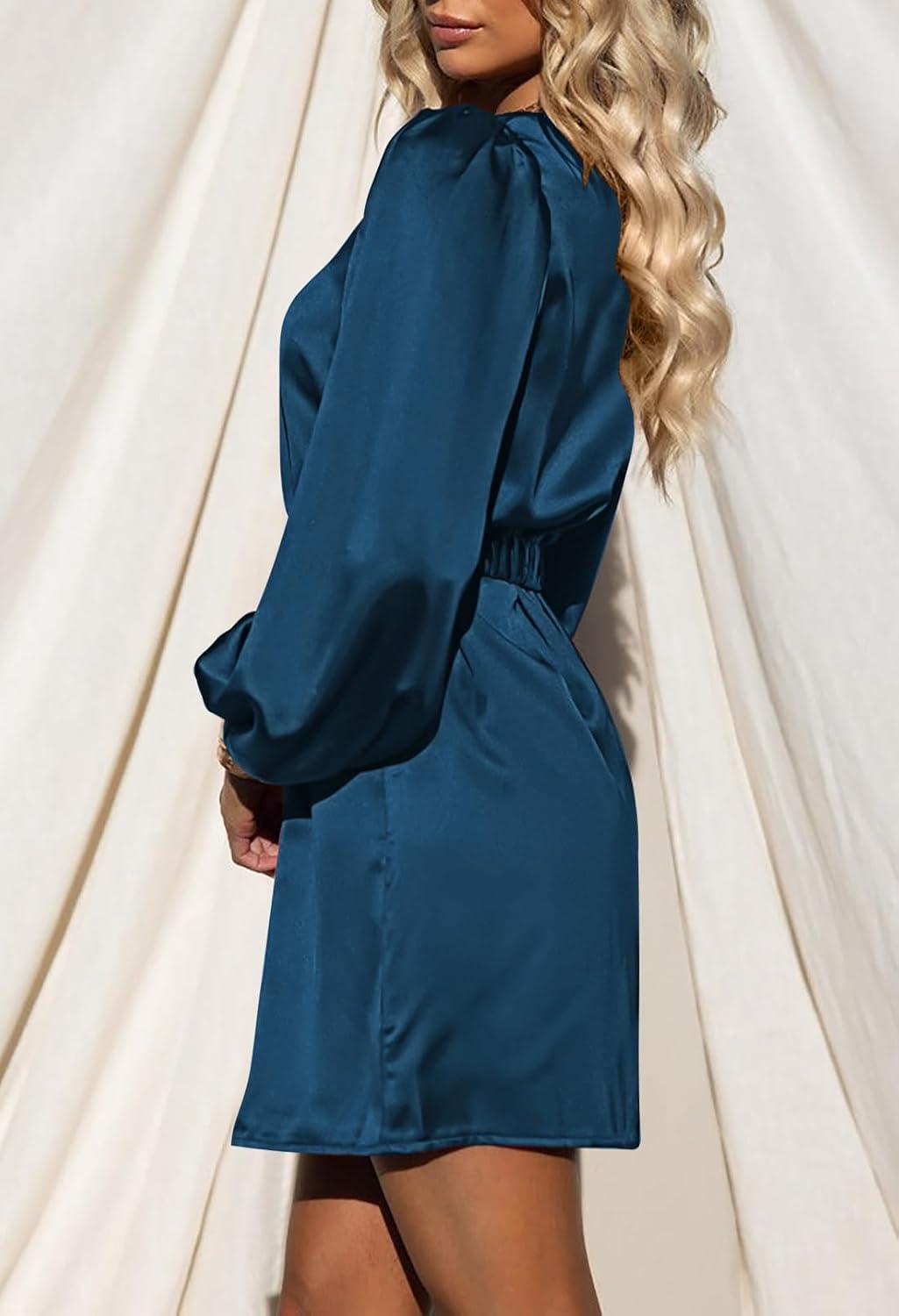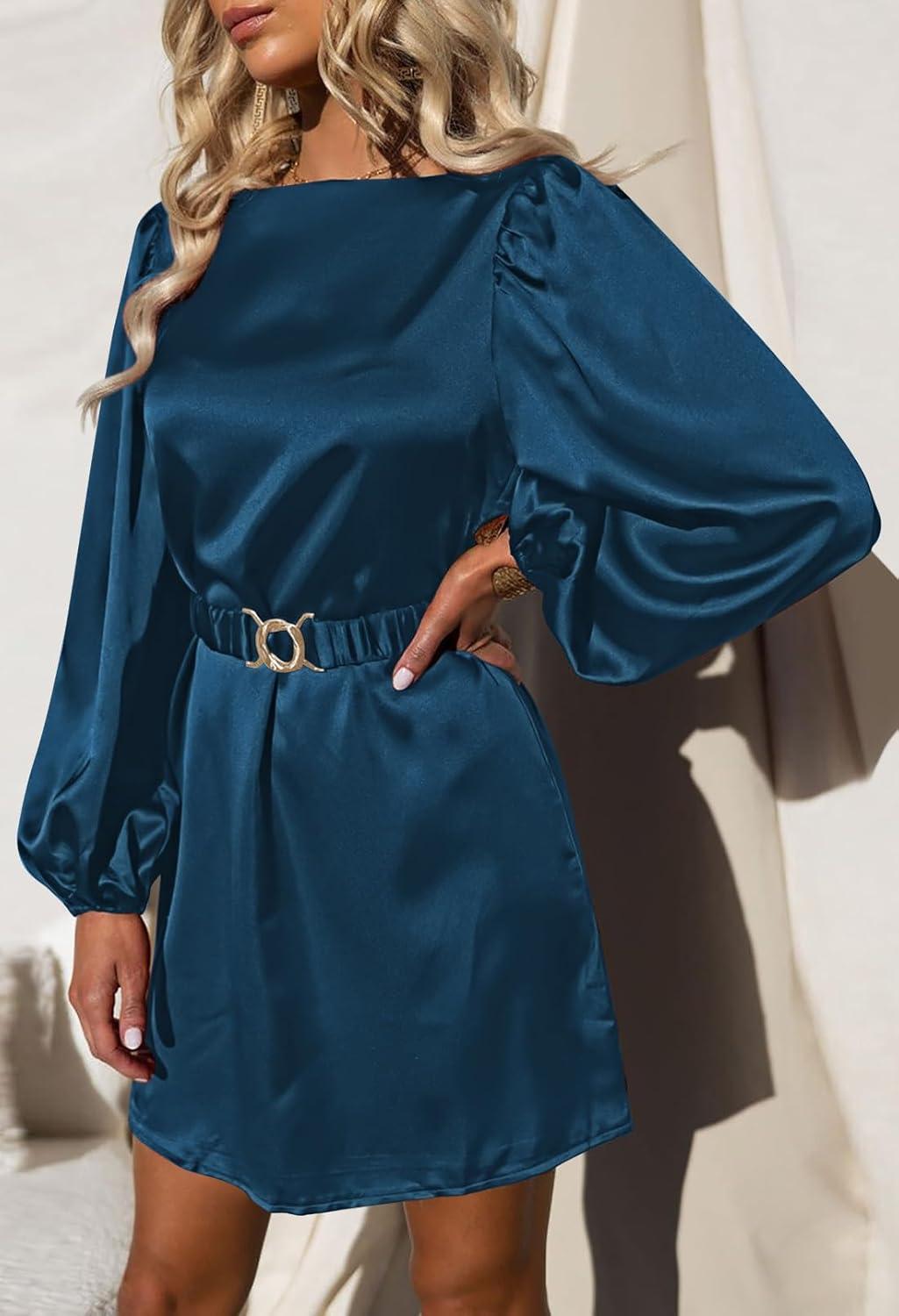 We were immediately drawn to the elegant silhouette of this satin dress, which skillfully ⁤blends classic sophistication⁢ with a modern twist. ‍The ⁢lantern ⁤long sleeves paired with ⁤a graceful boat ​neckline create a refined, yet slightly dramatic aesthetic. The⁢ elastic metal belt cinches at the waist,‌ delivering a⁣ slimming effect⁤ that‍ naturally enhances body proportions. Its above-the-knee length showcases the legs beautifully, adding to the dress’s flattering appeal. The satin fabric exudes a subtle sheen that catches the light just right-a perfect choice for cocktail parties, weddings, or formal evenings this fall. The overall design ‌feels​ thoughtfully made ​to elevate both comfort and style.