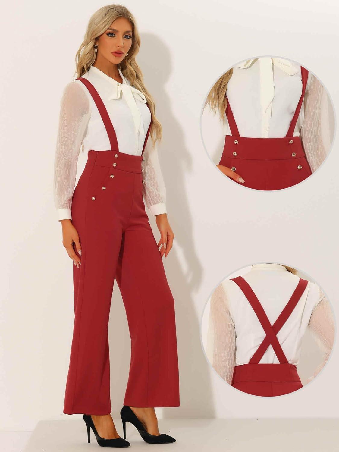 | Stylish suspender-overall look adds a modern twist to office wear. | Color options are somewhat limited. |