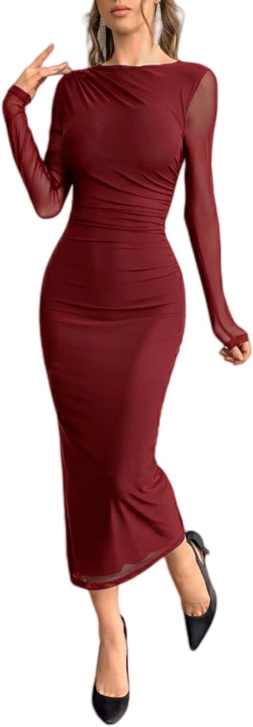 the LIGHT DOT Women’s long Sleeve Bodycon Midi Dress strikes a lovely balance between sophistication and comfort. Its sheer mesh layering paired with the ruched detailing celebrates feminine curves without compromising elegance, making it an ideal choice for cocktail parties or any occasion where you want to feel effortlessly chic.We appreciate how the cinched hem and bodycon fit come together to create a graceful silhouette that adapts seamlessly across seasons. Whether you’re drawn by its flattering design or the versatility it offers, this dress certainly earns its place in a modern wardrobe.