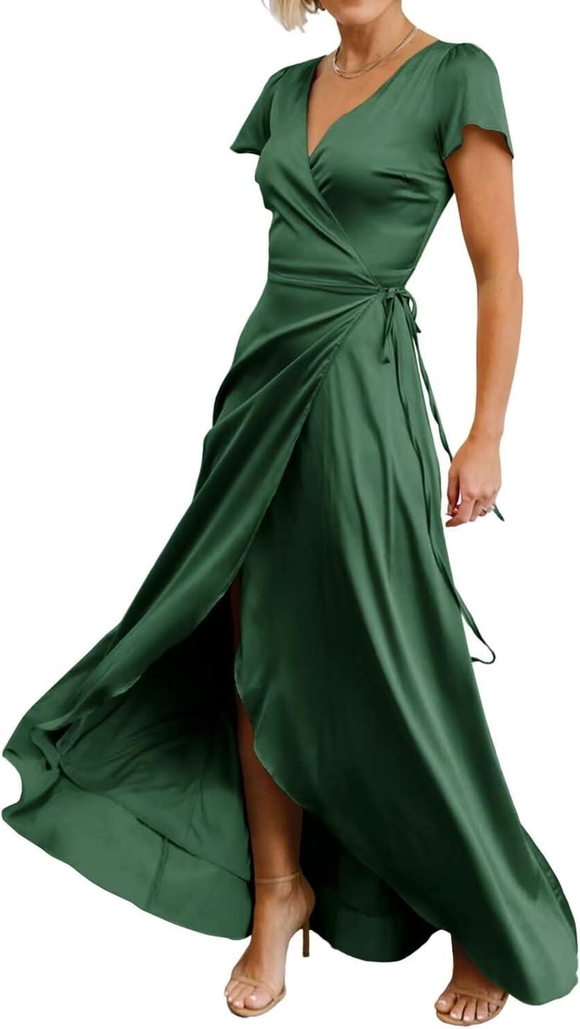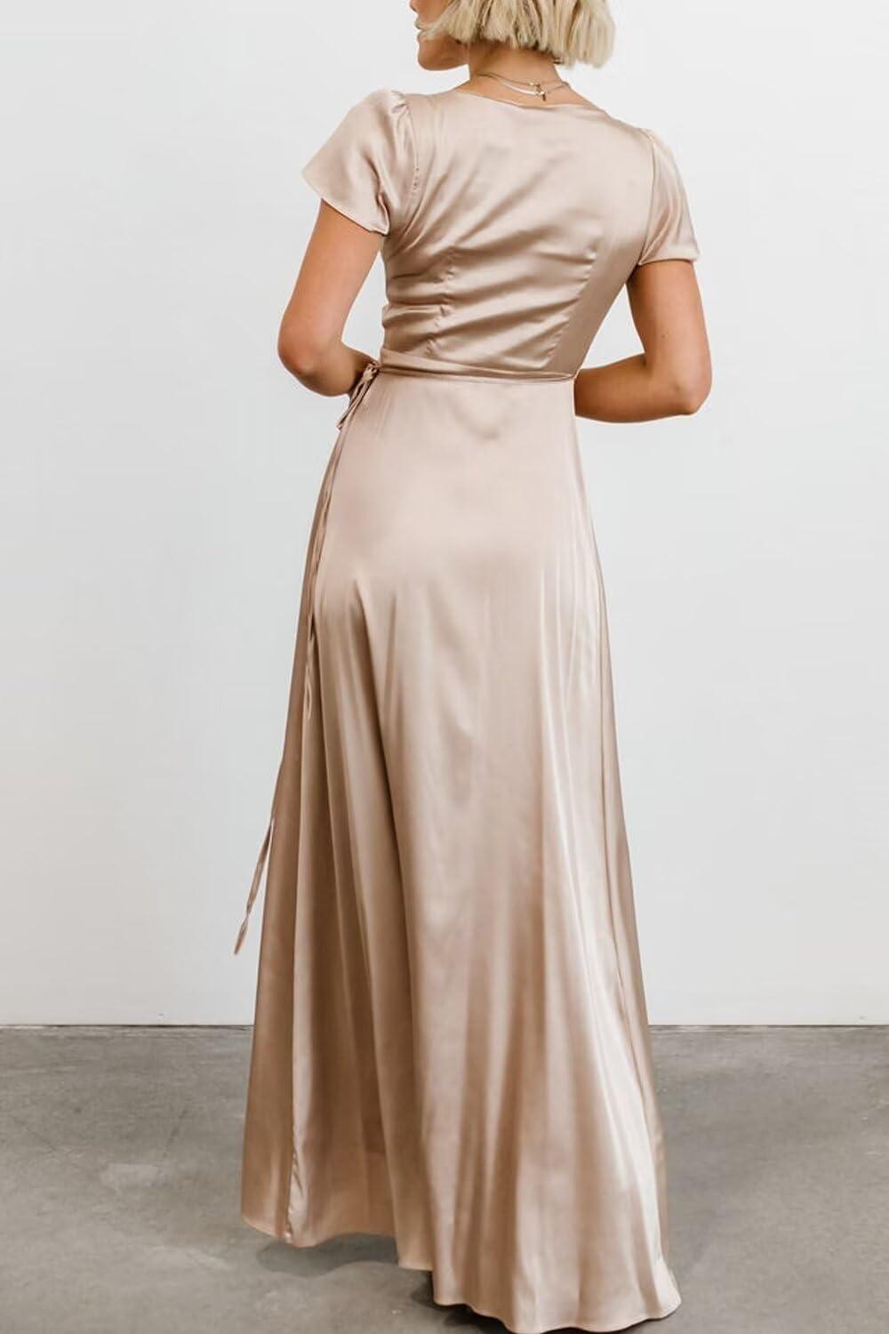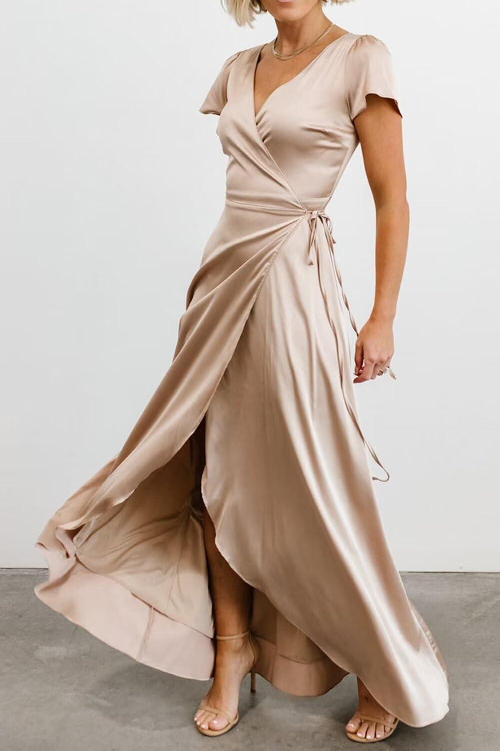 Ready to elevate your formal wardrobe with this refined, satin wrap gown? Shop Now on Amazon