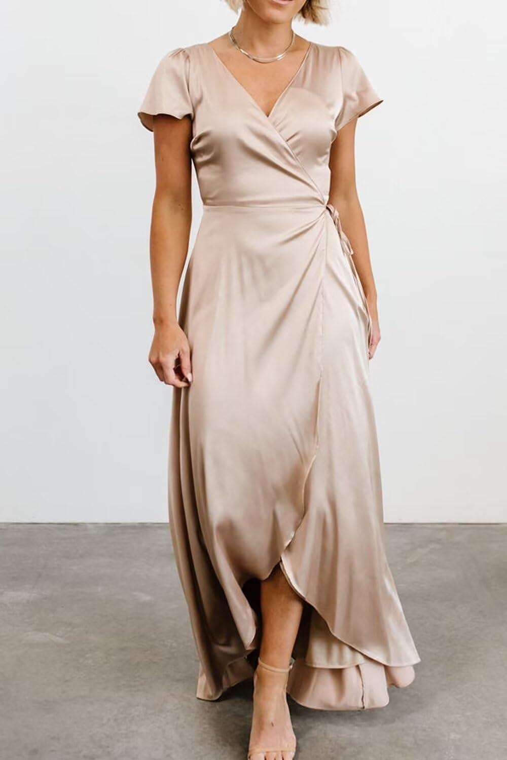 We found this gown to be incredibly adaptable, making it a superb choice for various formal occasions. Its classic V-neck and elegant satin fabric create a refined silhouette that transitions beautifully from a sophisticated wedding party to a memorable prom night. The wrap design with a tasteful split not only enhances comfort but adds a subtle touch of allure,allowing us to feel confident and graceful throughout the event. whether accessorized with delicate jewelry or a bold clutch, this dress effortlessly complements multiple styling preferences.