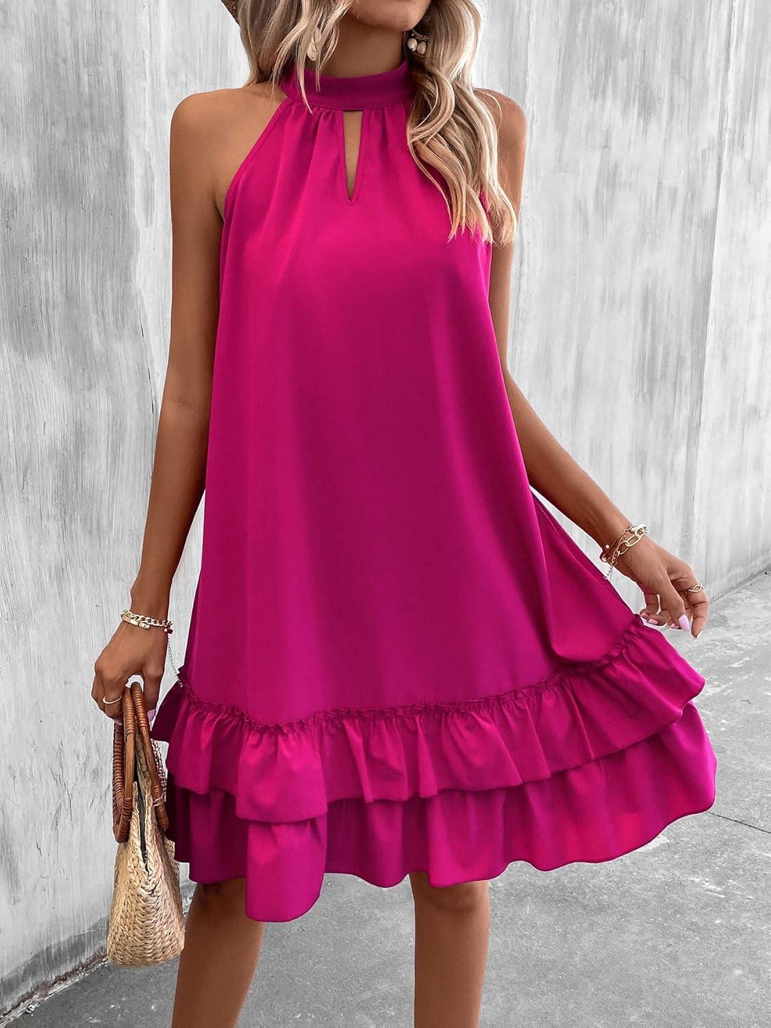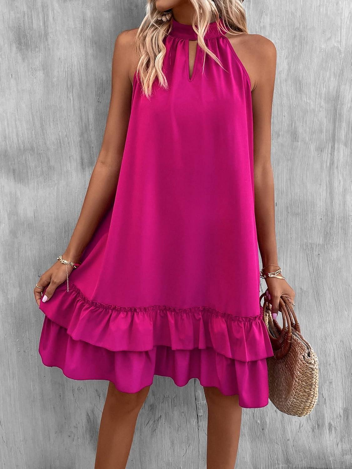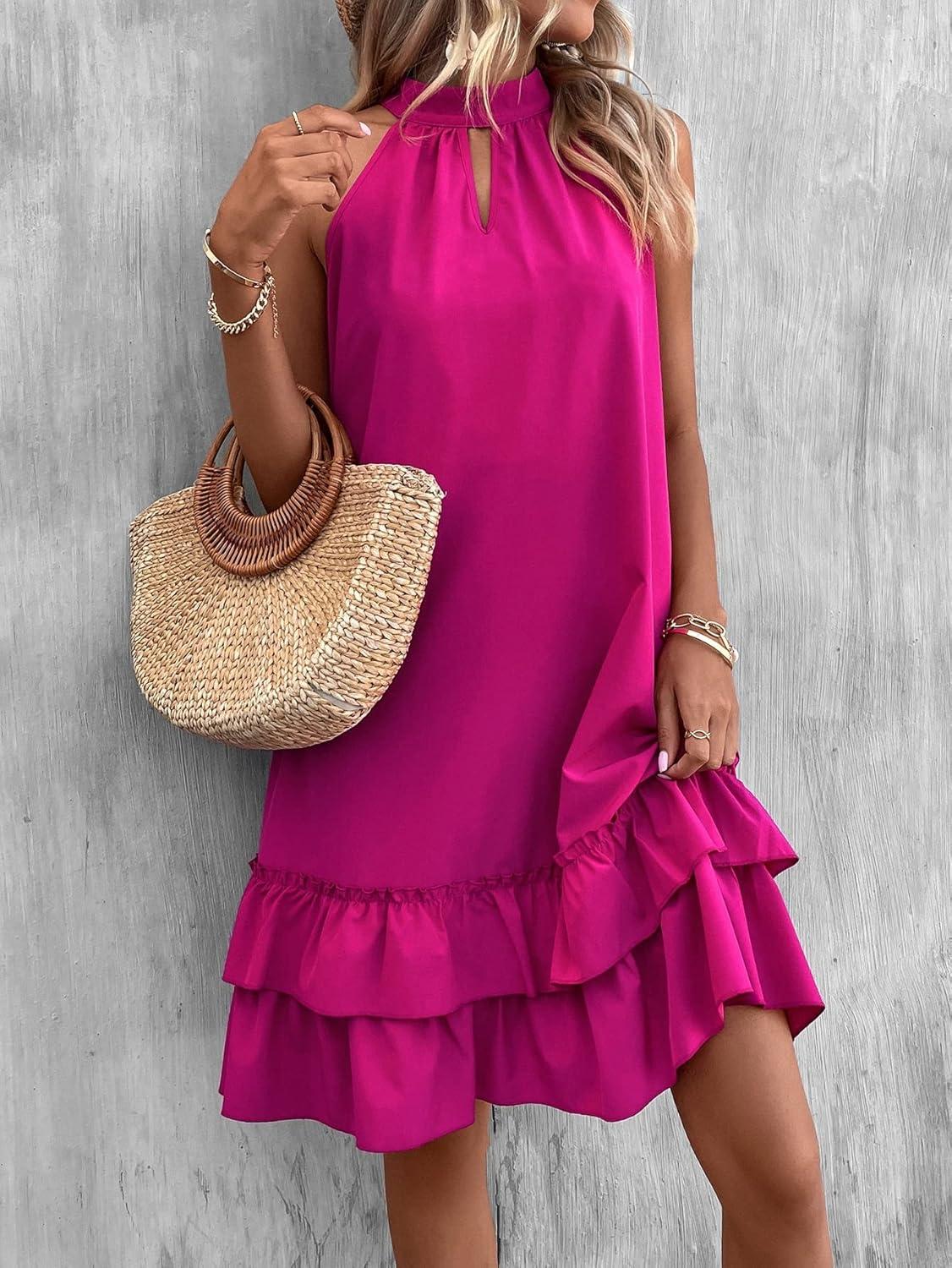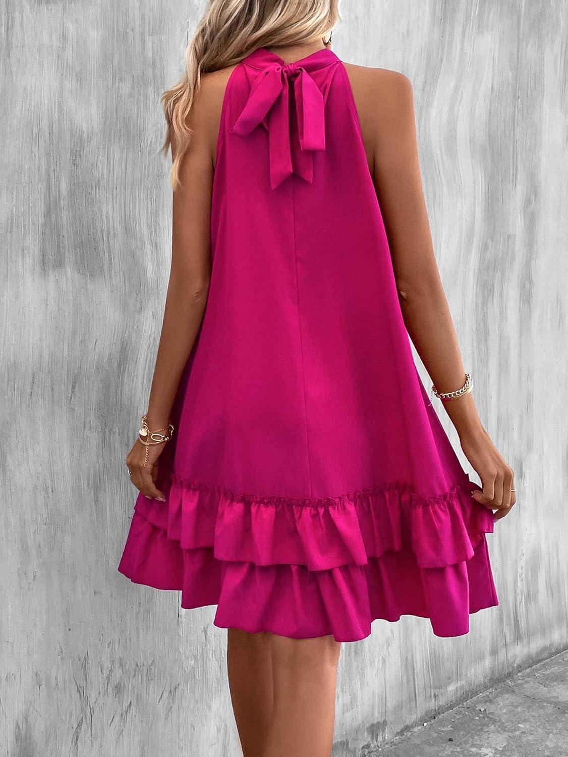 After trying this vibrant hot pink ⁣dress, we appreciate how effortlessly it blends ‌playful charm with a flattering ​fit. The sleeveless design and halter neckline keep⁣ it⁣ breezy and perfect for warmer ‍days, ‍while the layered ruffle hem‍ adds movement and​ dimension that make every step feel dynamic.‍ The ⁣tie back​ detail lets us customize the fit, enhancing comfort without sacrificing style. Whether for ⁢a casual brunch or an evening out, its A-line⁤ swing silhouette remains universally flattering and fun to wear.