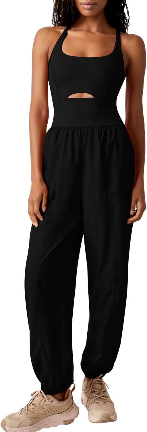 We found this jumpsuit to be an ideal blend of comfort and practicality for our workout routines.The fabric stretches just enough to provide unrestricted movement without feeling too tight or lose, making it perfect for running, gym sessions, or casual wear. Its breathable material keeps us cool during intense exercise, while the one-piece design eliminates any hassle of matching separate tops and bottoms.The addition of pockets was a pleasant surprise, offering convenient storage for small essentials like keys or cards without compromising the streamlined look.