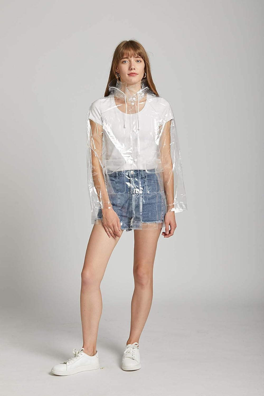At first it is noticed for it’s clarity, but over time the Freesmily Women Clear raincoat EVA Waterproof Rain Jacket Coat with Detachable Hood settles into the background of a morning. In daily wear the plastic softens in familiar ways,the fit relaxes,and the comfort behavior shifts toward something quietly accepted rather than tested. As it’s worn in regular routines, the sound and slight sheen fade into the small rituals of dressing, and small scuffs or creases read like notes of use rather than damage. Left alongside jackets that come and go, it simply becomes part of rotation.