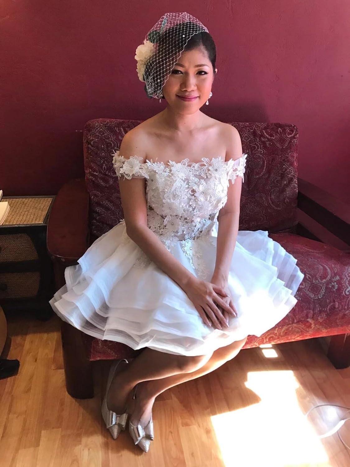after carefully evaluating this off-shoulder organza dress, we appreciate the delicate combination of lace appliques and beadwork that gives it an elegant yet youthful vibe. The handcrafted quality is evident in the finishing details, and the built-in bra adds practical support without sacrificing style. its sleeveless design and above-the-knee length make it an ideal choice for warm weather events, offering both comfort and sophistication.However, sizing requires attention – since it can be custom-made, providing exact measurements is key to achieving a perfect fit. We recommend dry cleaning or gentle hand washing to maintain the fabric’s pristine look over time.
