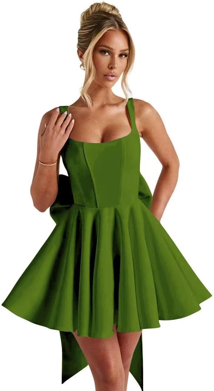 After a few wears, the 22 Plus Spaghetti Straps Homecoming Dress with Bow-Knot Satin Square Neck Cocktail Party Dress reads less like an occasion-only piece and more like a familiar article in the closet. In daily wear the fabric relaxes and the fit eases, comfort becoming more predictable as it’s worn, while small signs of aging simply mark the rhythm of repeated use. It finds its place in regular routines, noticed in quiet moments of dressing rather than spotlighted, and appears more through habit than intent. Over time it settles.