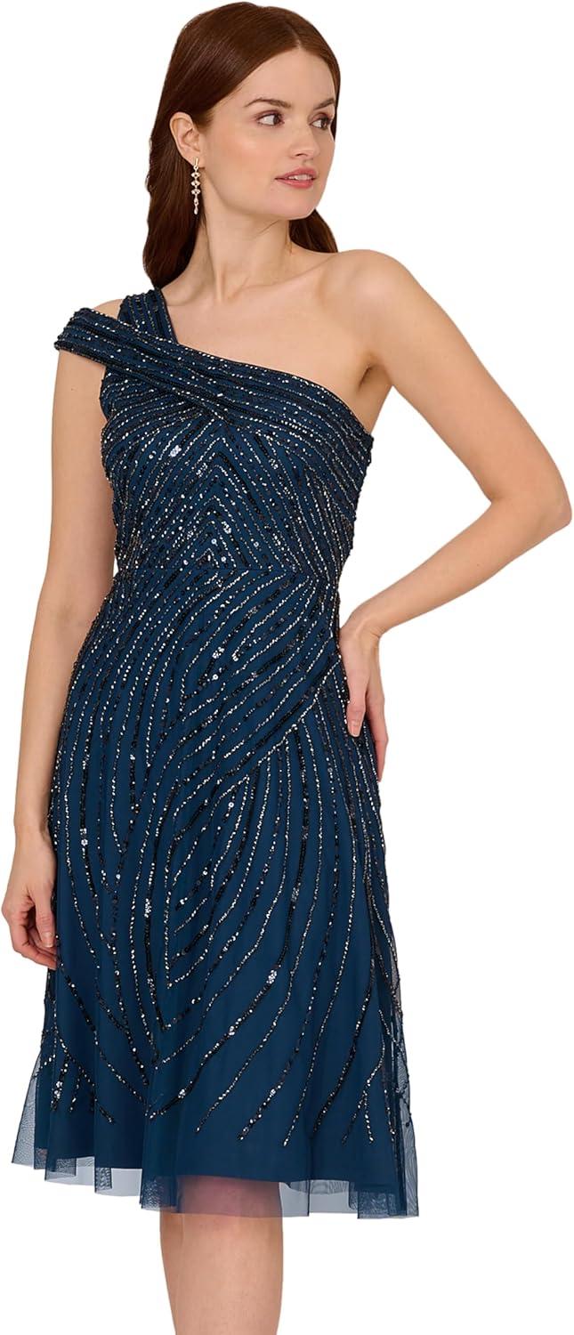 Overview of the ‍Adrianna papell Women’s Beaded One Shoulder dress