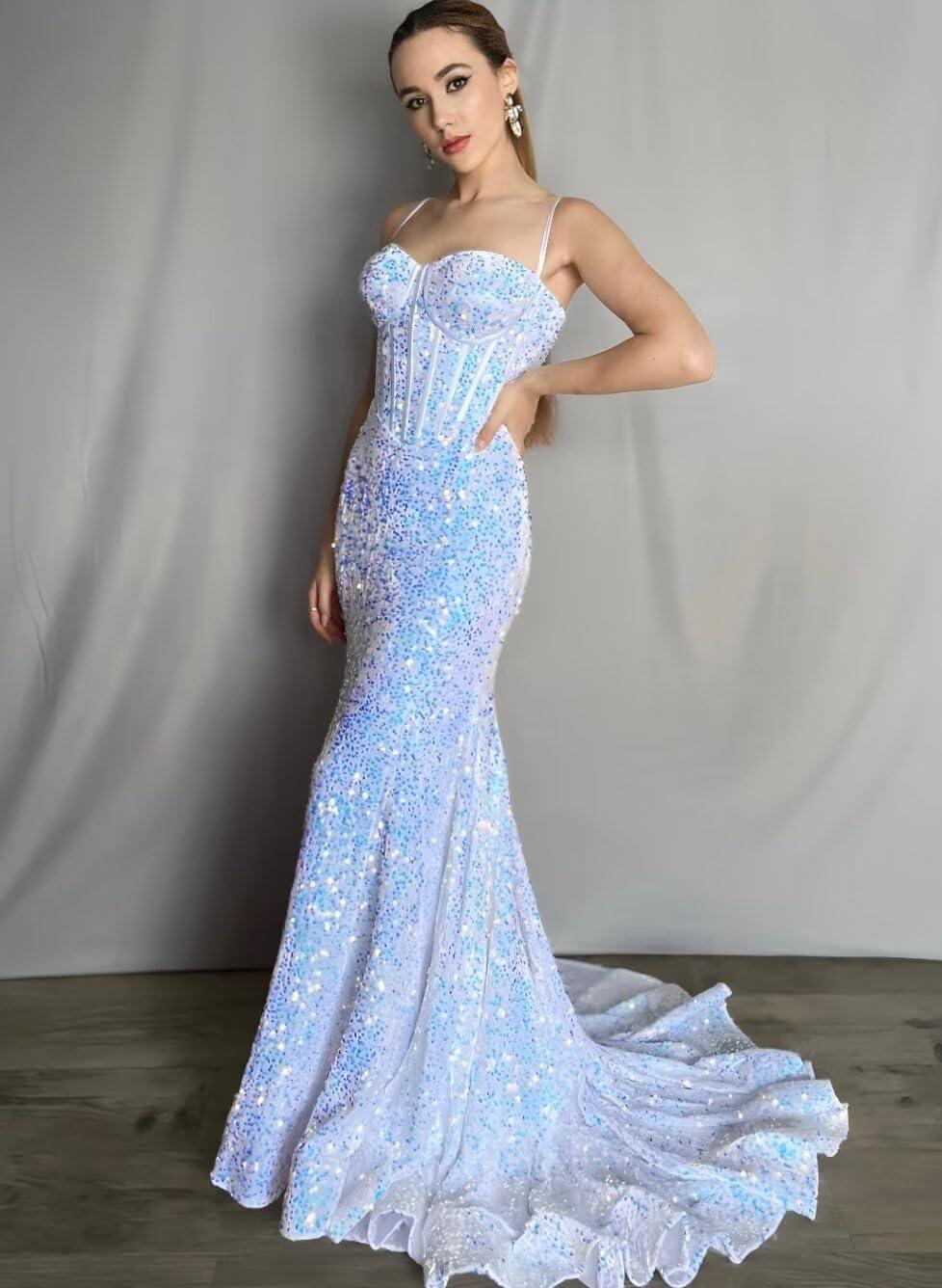 Upon ⁤closely inspecting the gown, the ​first thing that captures ⁤our attention is the dazzling sequin embellishment that beautifully‌ catches⁤ light from every angle. The sparkling effect⁣ truly sets this dress apart, creating a shimmering silhouette perfect for formal occasions. The⁣ mermaid cut expertly sculpts the figure,‍ with the corset bodice offering both structure and​ elegance. Thin spaghetti straps add a ‌delicate touch, balancing the bold shimmer ⁣with subtle sophistication. The craftsmanship⁣ feels meticulous,⁣ with every sequin firmly ‌attached to prevent shedding during​ wear.