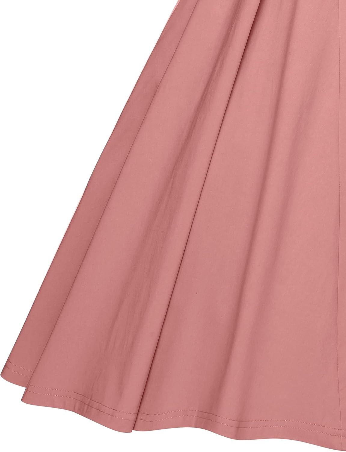 How the dress photographs depends on light and proximity. In natural daylight the shape and swing of the skirt register cleanly, with pleats and gathers showing depth; indoor flash tends to flatten texture and can wash out lighter sections, while warmer artificial light deepens color tones. Close-up photos make small wrinkles and pocket bulges more visible, and images taken from three-quarter angles emphasize the vintage waist-and-skirt profile better than straight-on shots. movement is captured as a soft arc in motion shots,but stationary photos can reveal horizontal lines across the back or at the waist after periods of sitting. tailoring lines and seam details translate well to camera, even as brief wear-related shifts and minor creasing become more apparent in higher-resolution images.