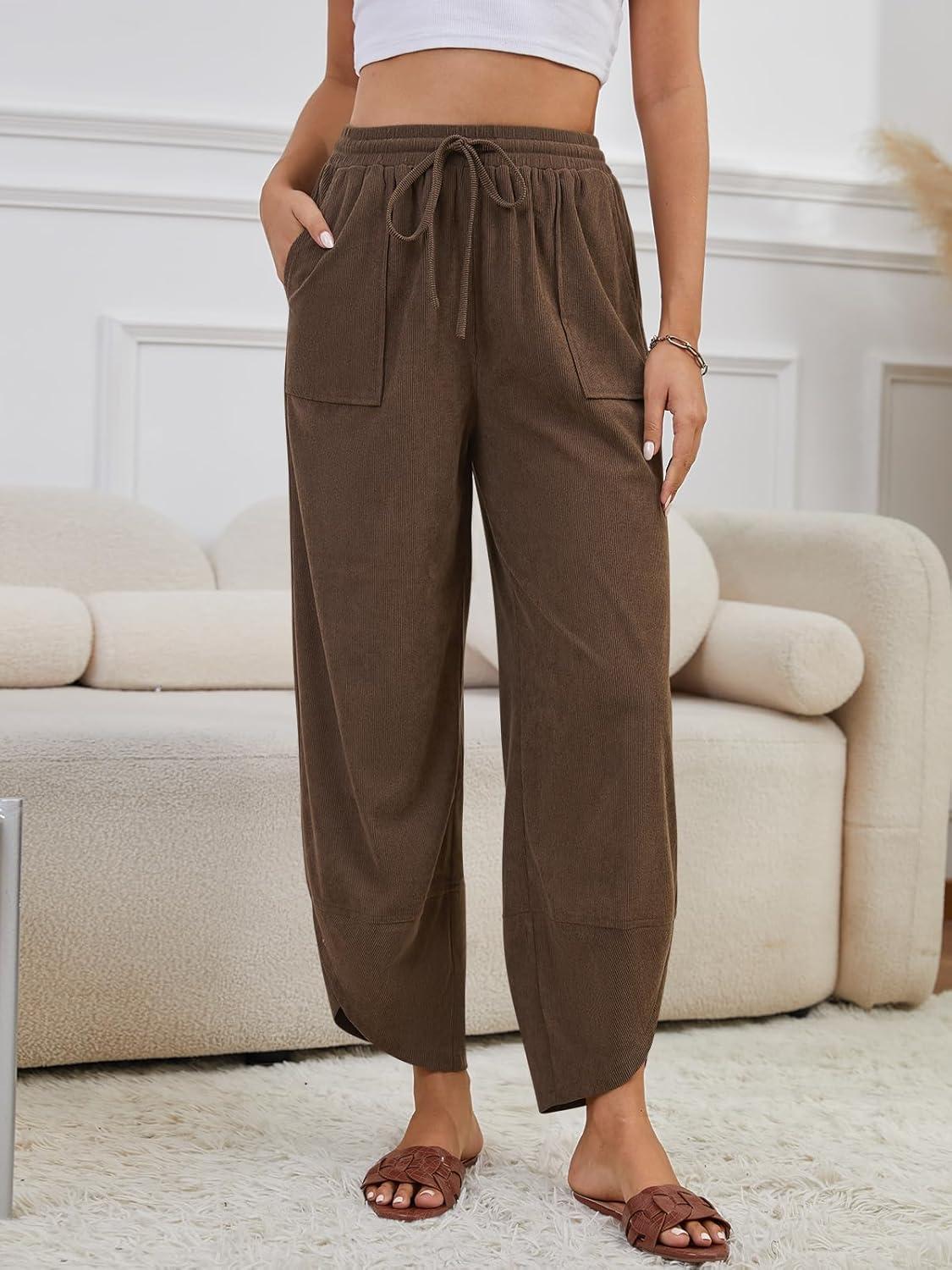 With the brand’s Womens Corduroy Pants casual Wide Leg Pants Harem Pants Baggy Trousers Drawstring Elastic with pockets, you notice over time how it quietly slides into the rhythm of mornings; in daily wear it becomes a familiar shape rather than a statement. As it’s worn, the fabric moves with you and comfort behavior shows in small ways — a softened cuff, a relaxed waist — not loudly, just plainly. In regular routines the corduroy ages into a worn-in touch and the trousers keep a steady, everyday presence. After a few wears it simply rests and stays.