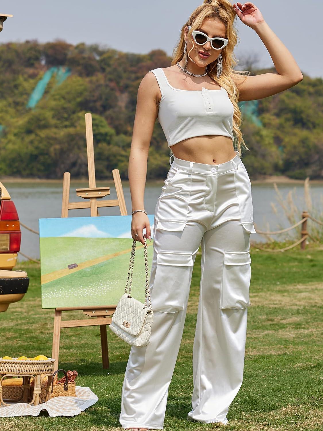After several wears the Womens High Waisted Satin Cargo Pants Loose Fit Wide Leg Trousers with Pockets trendy Outfit slips into a quieter role in your wardrobe. In daily wear you notice the satin softening and the way the wide leg moves and settles, comfort finding its place as it’s worn. The fabric ages in small, familiar ways — a slight dulling where it brushes, a softer hang at the hem — details that fold into regular routines. Over the first few weeks it becomes part of rotation.