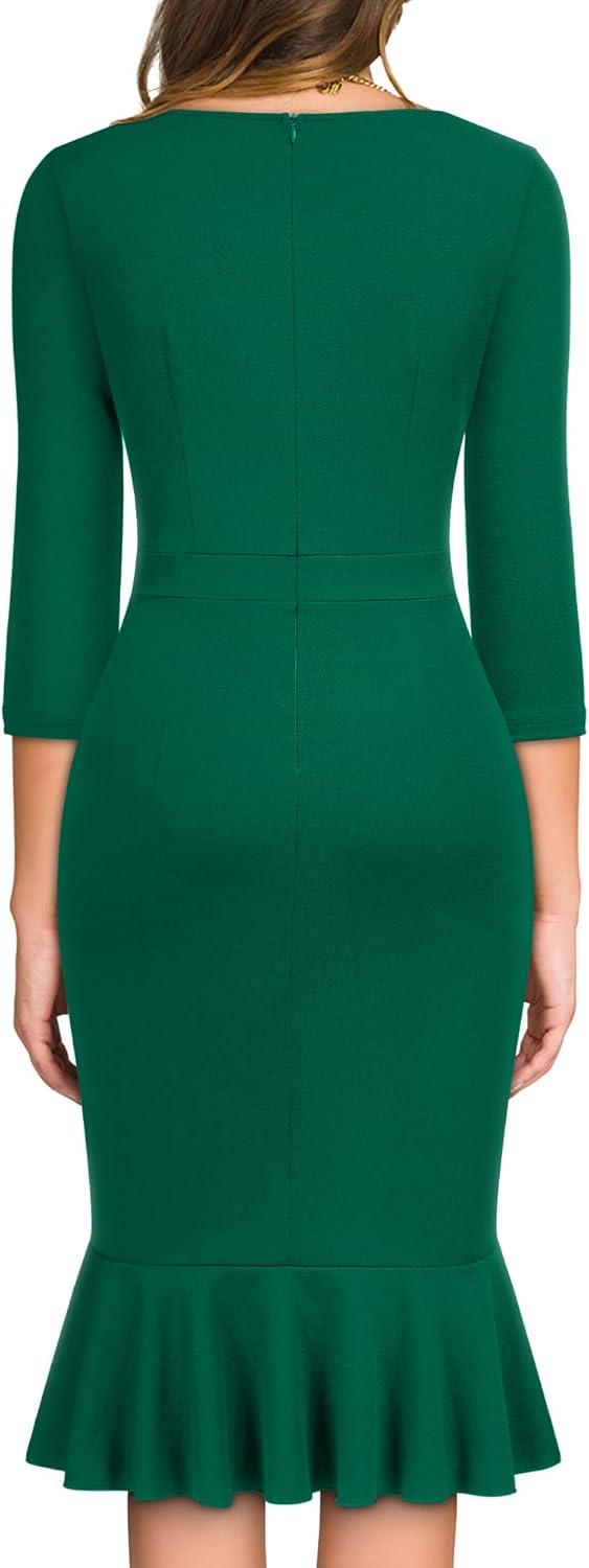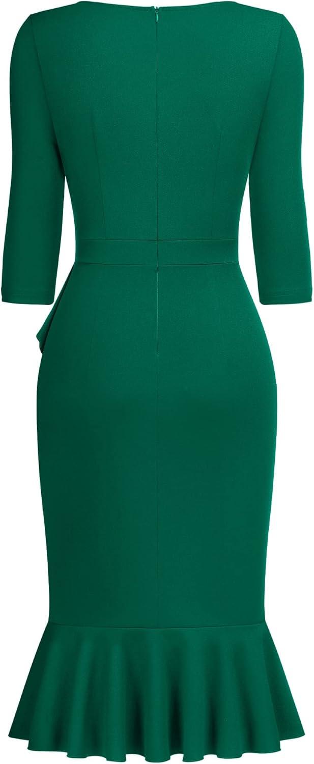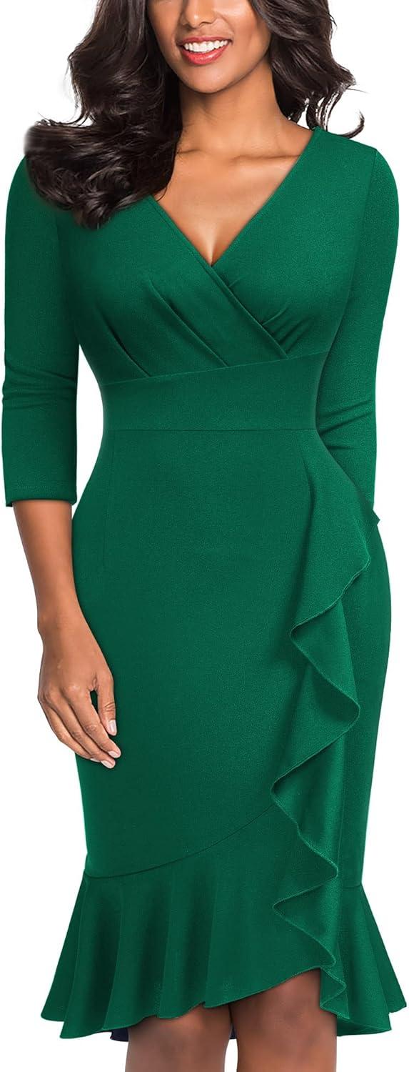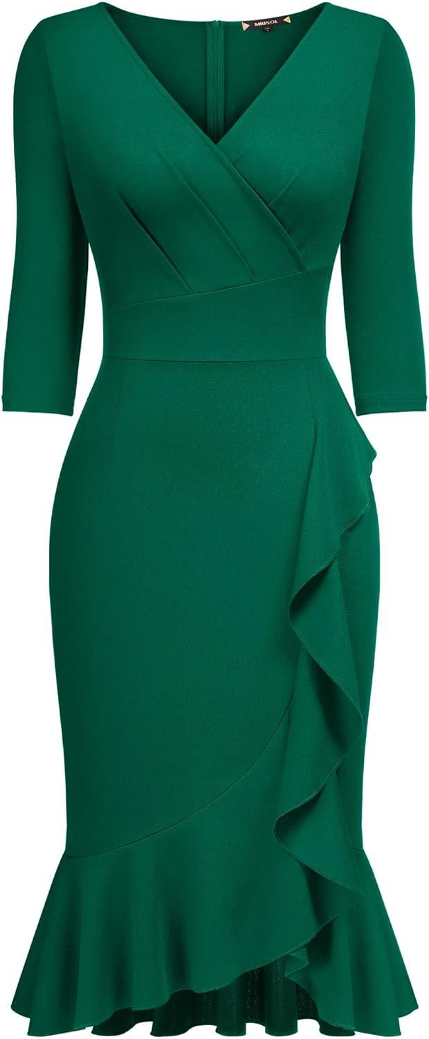 You pull teh miusol Retro V‑Neck Ruffle Slim Cocktail Party Dress from its slim package and feel how lightweight it is—just under a pound—before you even hold it up to the light. Slide into the slim silhouette and the retro V‑neck and cascading ruffle are the first things you notice: they frame your collarbone without feeling fussy, and the tailoring skims your curves in a way that reads both classic and modern.Available in Burgundy and Navy Blue, the colors look richer in person than on the page, and the listing’s short videos (unboxing, fit comparison and on‑body shots) give a useful preview of what to expect. In this review you’ll get a clear take on fit, fabric, construction and real‑world wearability—so you can decide weather this Miusol dress belongs in your next cocktail rotation.