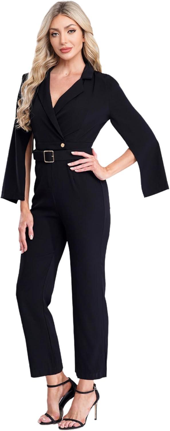 Listed as “Jumpsuits For Women V Neck Split Sleeve⁣ One Piece‌ Jumpsuit with ⁢Waist Belt for Business meetings,” this V‑neck split‑sleeve jumpsuit gives a clear first​ impression the moment ‌you put it on. You feel a smooth, slightly cool ‌polyester‑spandex surface that stretches just enough as you lift your arms and sit.The fabric hangs with a midweight drape—substantial enough to keep seams flat across your shoulders but soft enough to develop a gentle sway in the‍ legs. The split ⁣sleeves open and close with your movement, catching light differently, and the waist belt tucks in without puckering the‌ material when you stand back up.