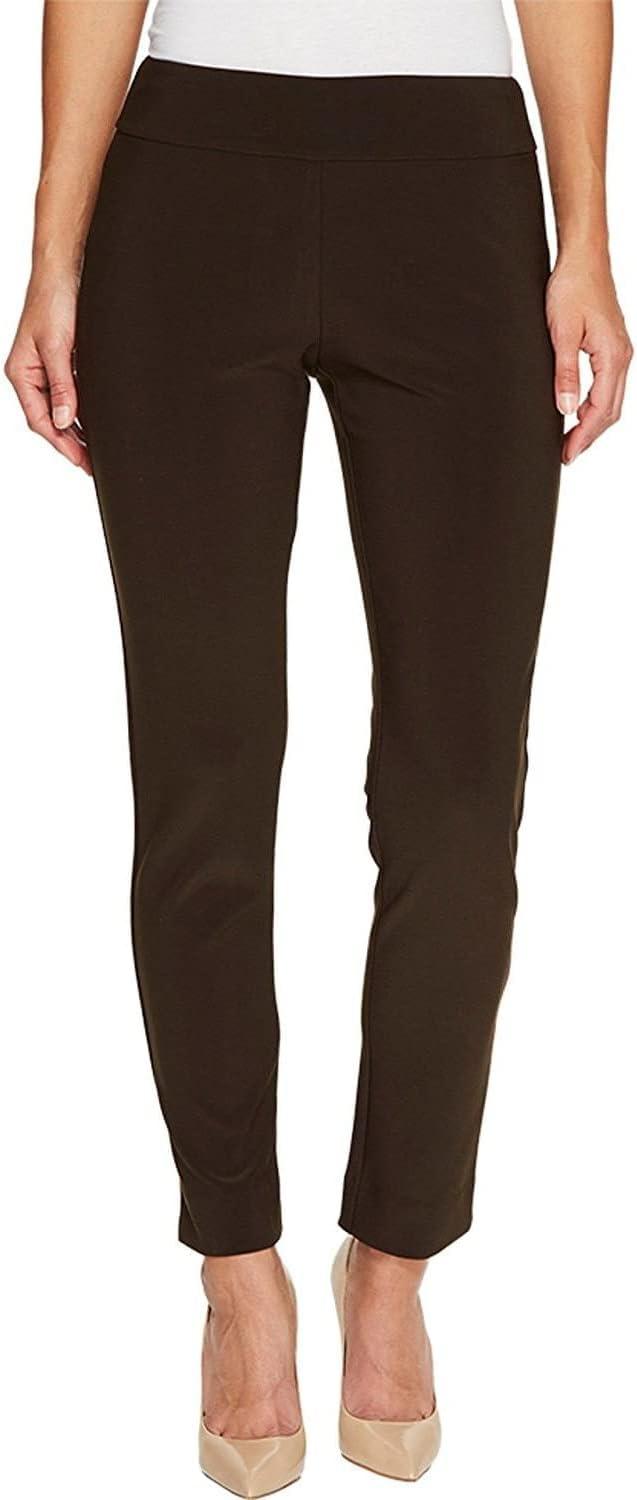 Sliding into the Krazy Larry Pull-On Ankle Pants — the brown pull-on in a size 10 — you first notice the fabric’s cool,slightly satiny touch and the soft give where it meets your skin. It skims your thigh with a composed drape, settling close without clinging, and the ankle hem falls with a neat, weighty little tuck rather than flapping or puddling. As you move from standing to sitting, the seams stay smooth and the front lies flat, the material bouncing back subtly as you shift. The overall impression is of a light-but-significant pant: quiet in weight, obedient in movement, and instantly familiar under everyday motion.