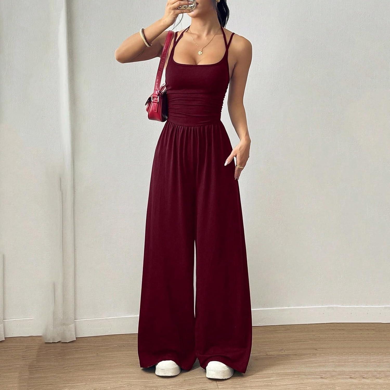 After a few rotations,the unnamed brand’s Jumpsuits for Women Spaghetti Strap Wide Leg Pant Romper Dressy Sleeveless One Piece Outfits Baggy Pants Summer begins to settle into the quiet rhythm of the closet. In daily wear it loosens into a familiar drape, comfort becoming something noticed less over time as the fabric softens at contact points and the seams show gentle aging; as it’s worn it simply fits into the background of getting ready. Worn in regular routines it turns into a dependable presence, reached for out of habit rather than deliberation. Over time it becomes part of rotation.