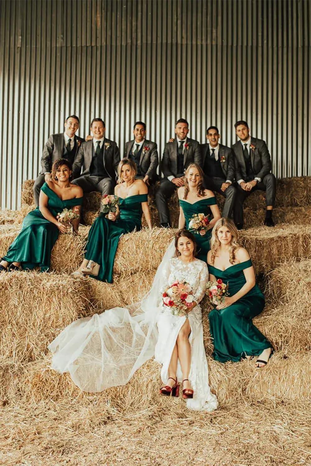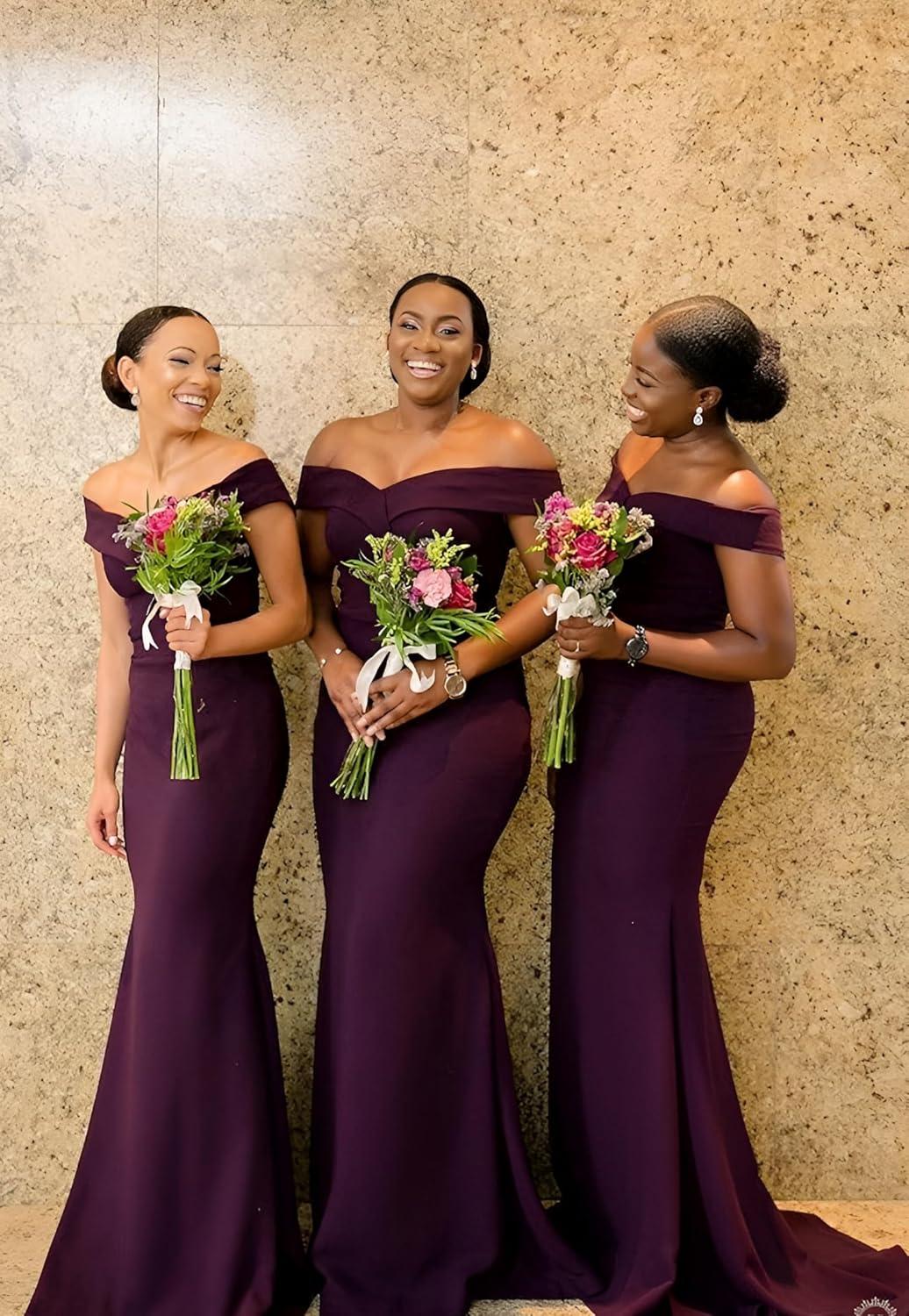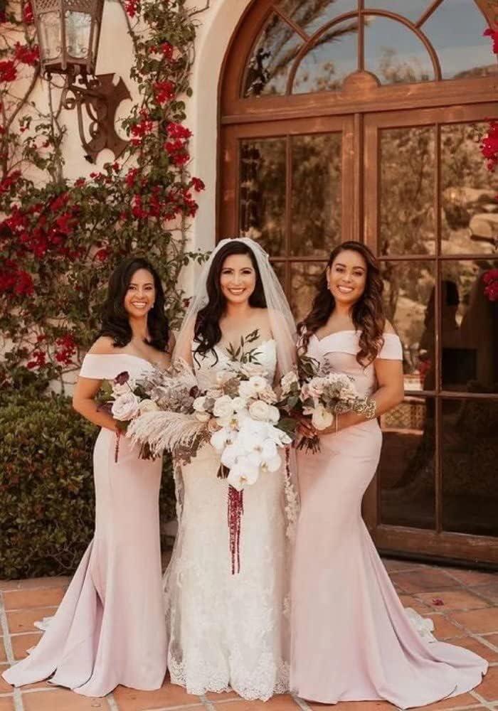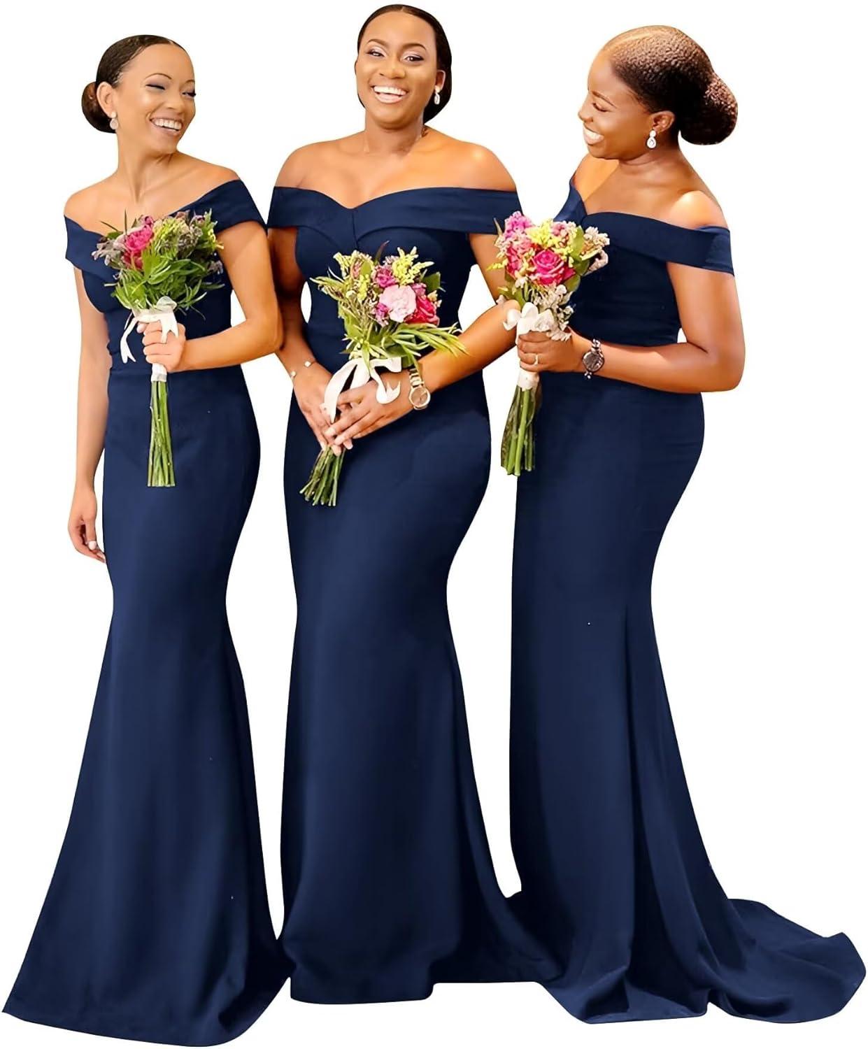 You slip into teh unbranded “Mermaid Bridesmaids Dresses for Wedding Long Off Shoulder Formal Prom Evening Gown” and the first thing you notice is how the off-shoulder band settles cool across your collarbones, offering a gentle resistance when you lift your arms. The fabric has a silk-like smoothness with a faint crispness to it — enough visual weight to hold the mermaid curve but light enough that the skirt follows your steps rather than dragging. As you move, the seams smooth over your hips and the hem hints at a modest flare; when you sit the gown doesn’t pinch, it just gathers itS weight at the ankle. under soft light the surface shows a subtle woven texture rather of high gloss, so the overall drape reads sculpted and considered rather than floaty. Those first moments in it feel quietly specific: tactile, shaped, and distinctly present as you stand, turn, and settle.
