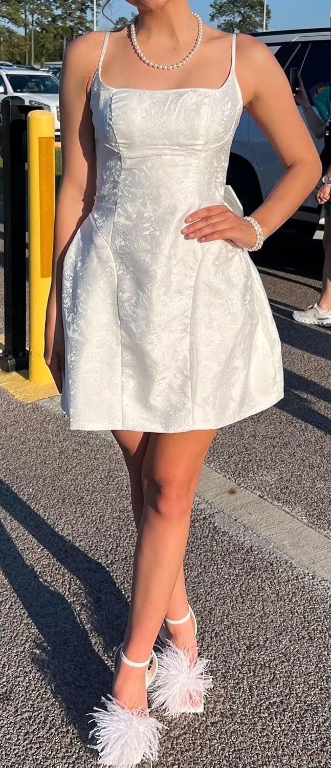| Spaghetti straps and V-neckline create a youthful, flattering silhouette ideal for teens. | Short hemline may not be ideal for colder climates or more conservative events. |
